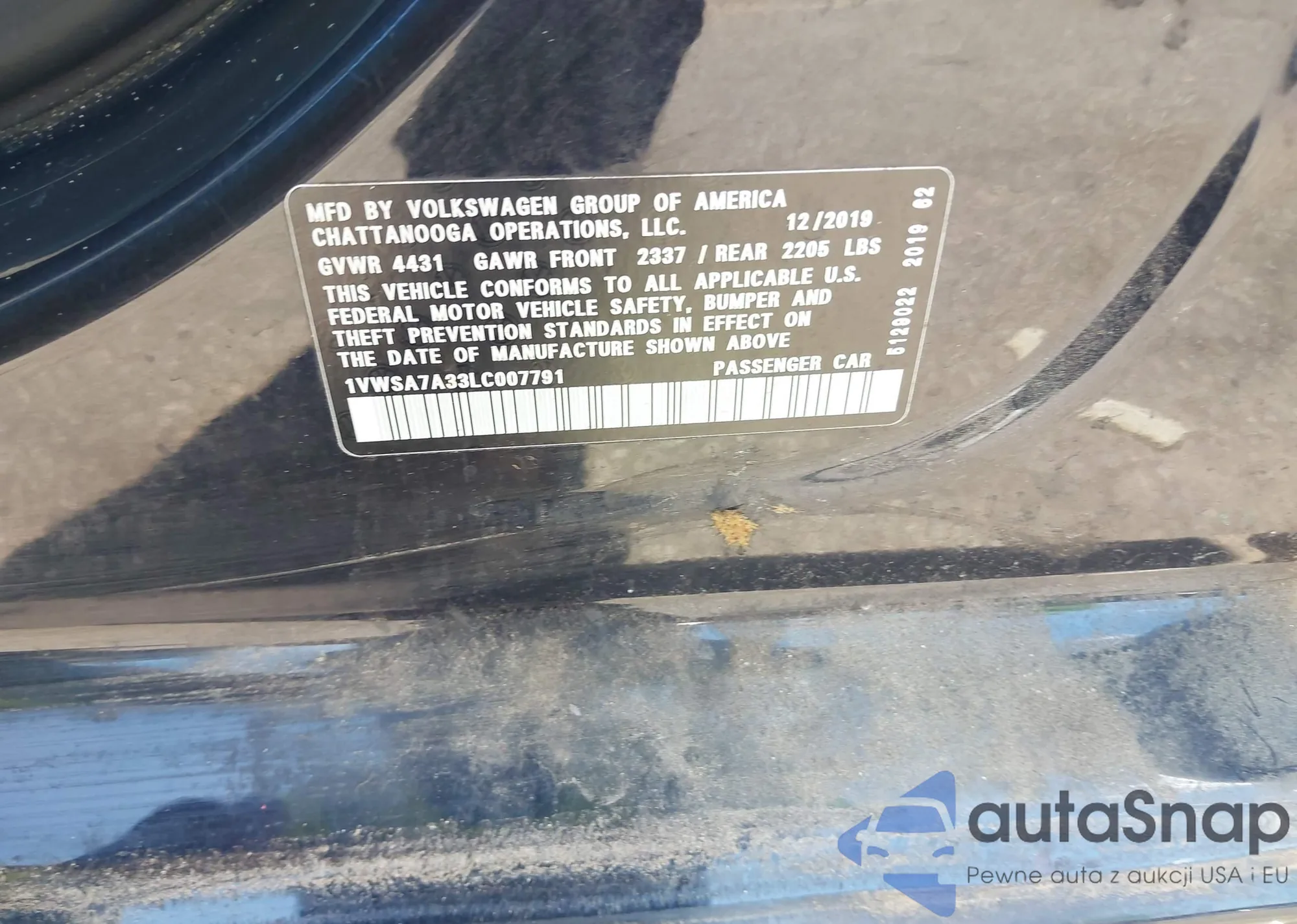 • VIN 1VWSA7A33LC007791