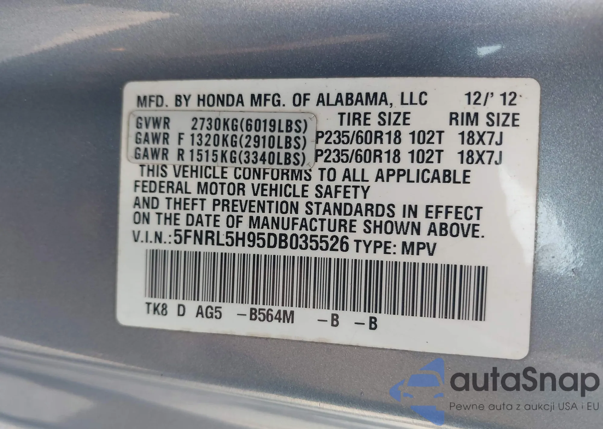 LOT: 43008014 VIN: 3TMDZ5BN5MM098653