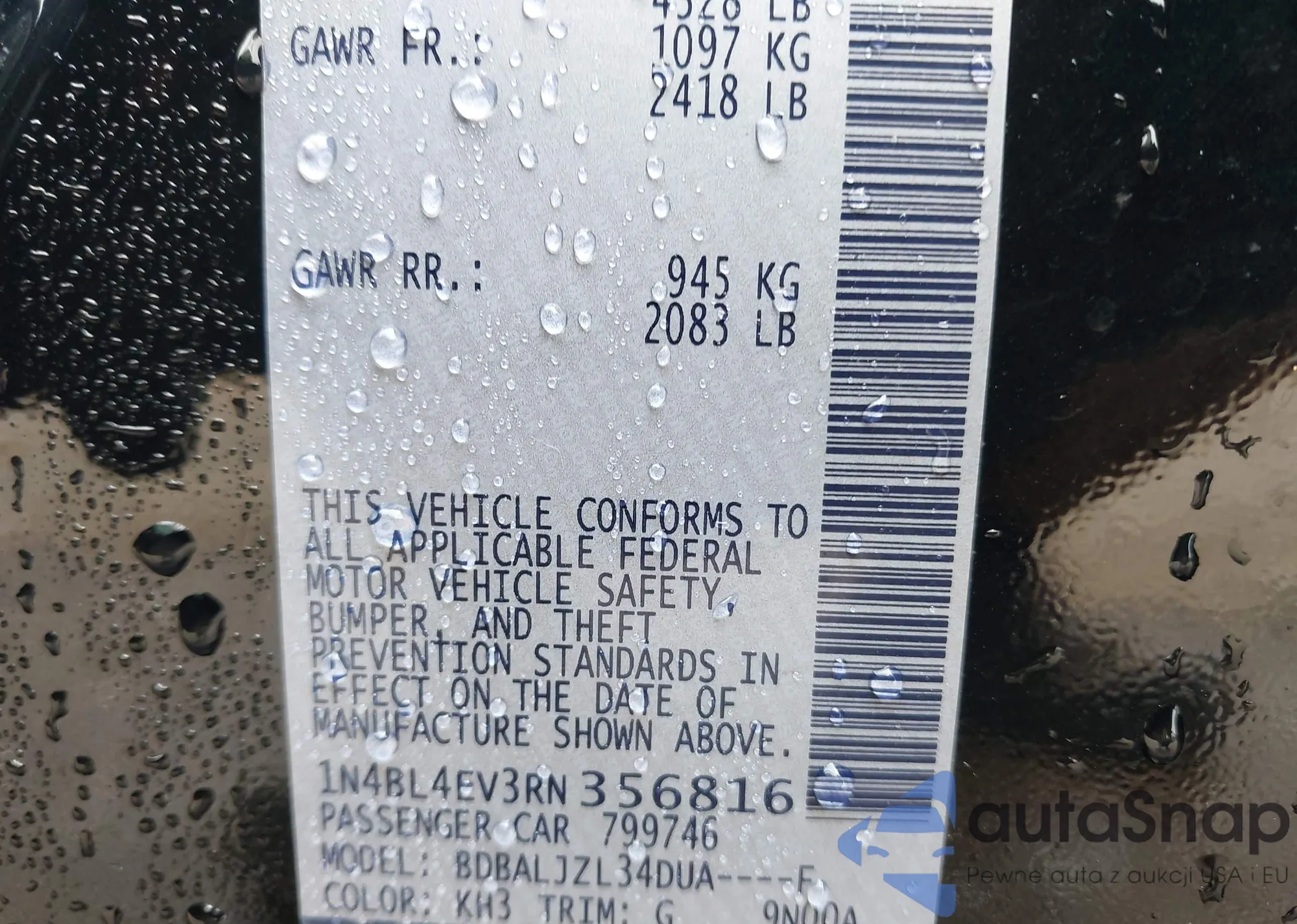 • VIN 1N4BL4CV2NN409972