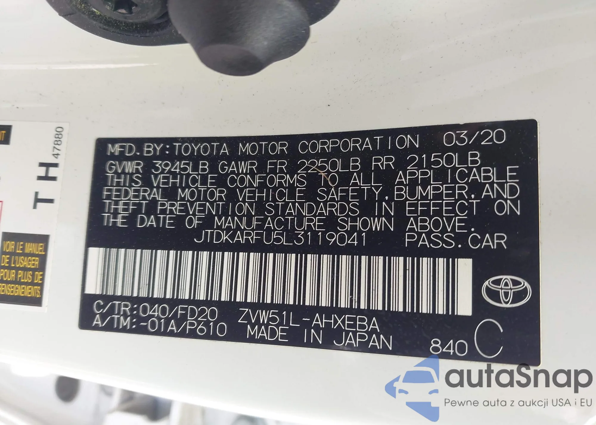 LOT: 42315218 VIN: JTDAAAAF3R3024816