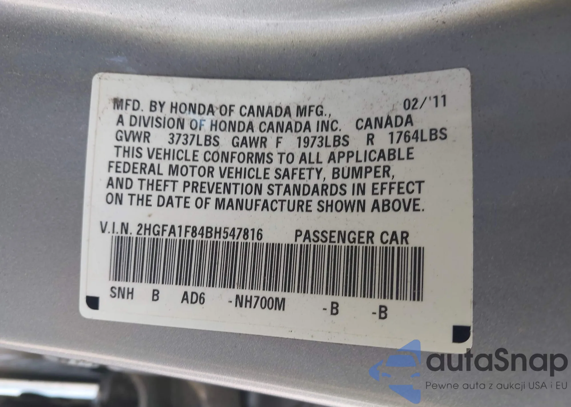 • VIN 5J6RS4H20SL016225