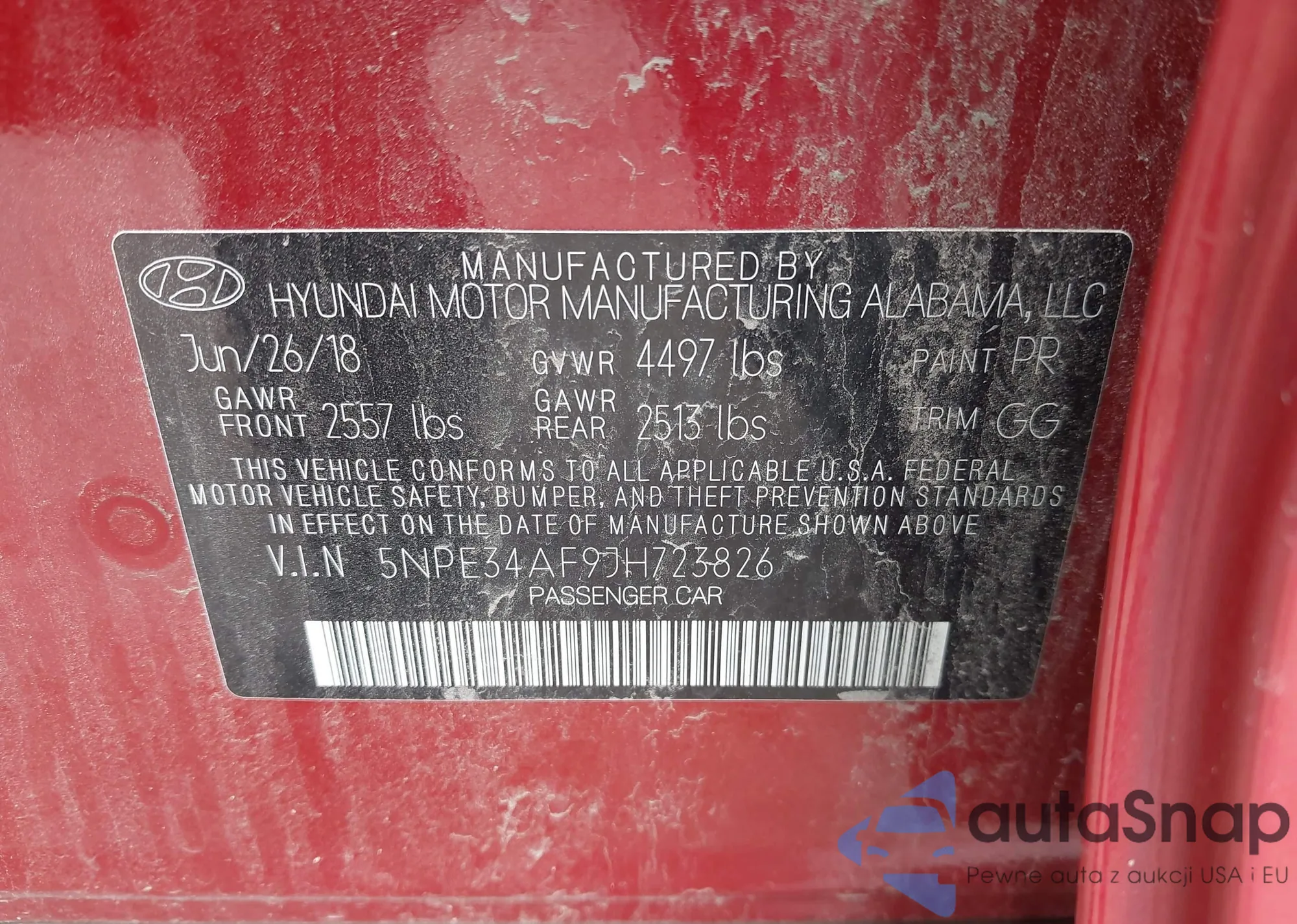 • VIN 5NPE34AF9JH723826