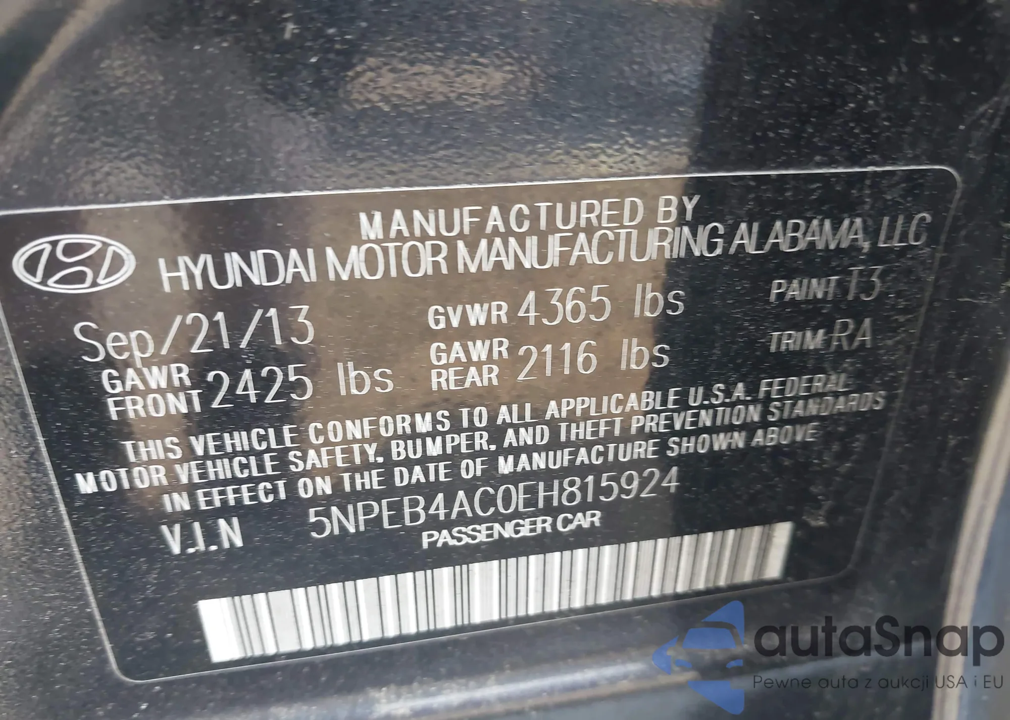 • VIN 5NPEB4AC0EH815924