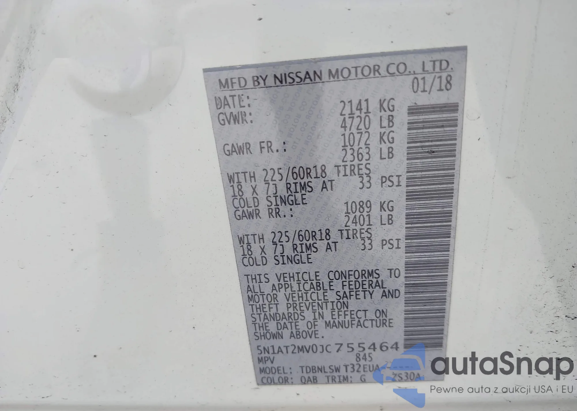 LOT: 42896713 VIN: 5N1AT2MV0JC755464