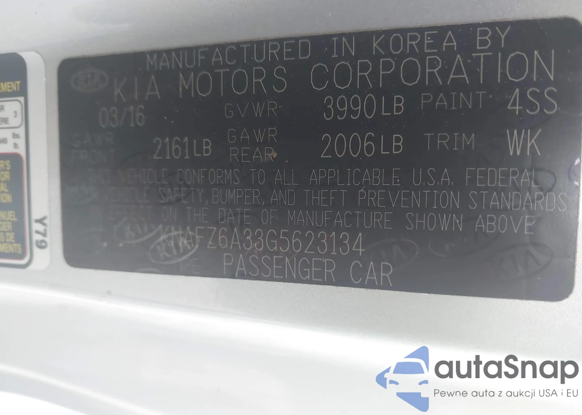 LOT: 42916315 VIN: KNAFZ6A33G5623134
