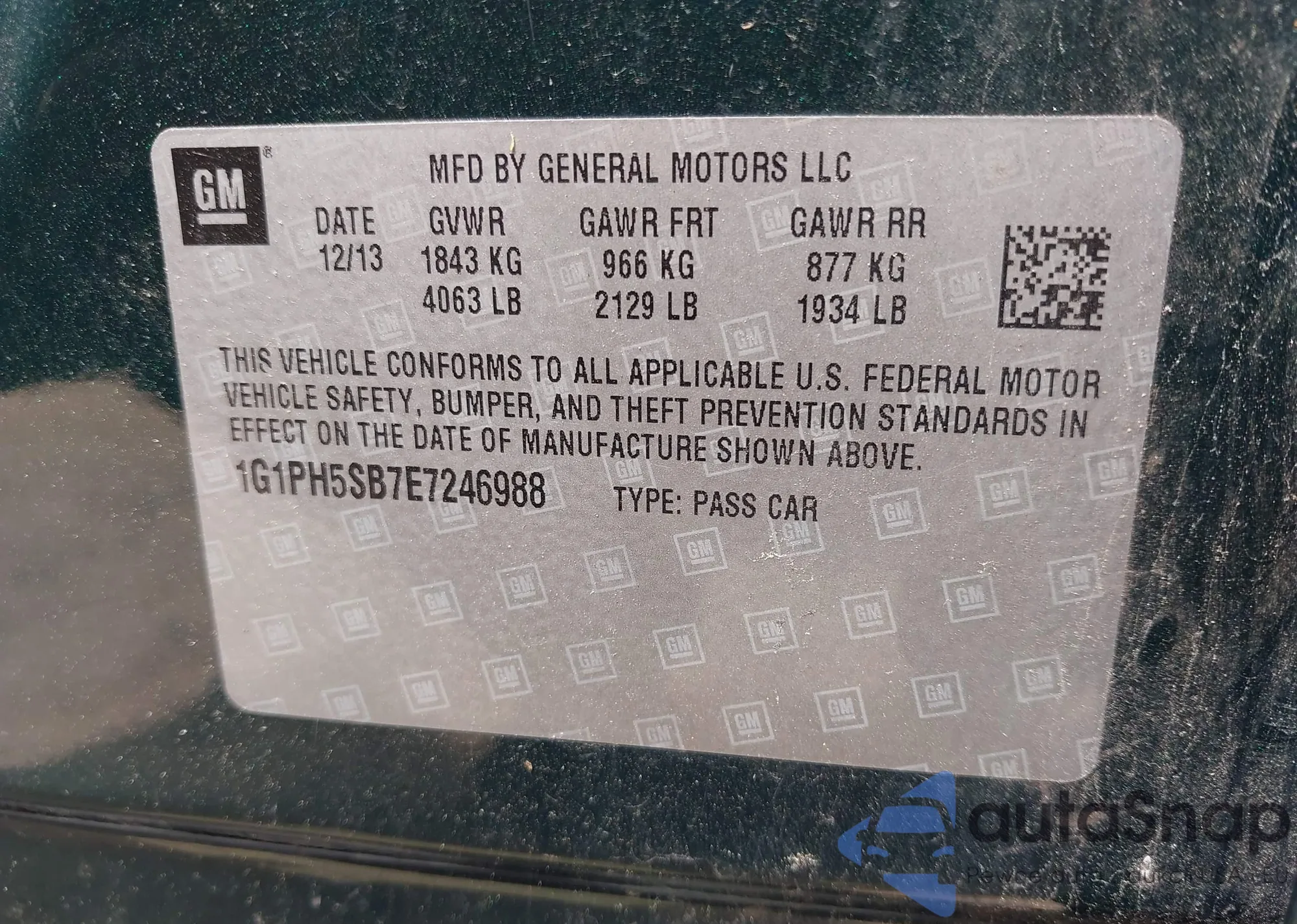 LOT: 43018363 VIN: 1G1PH5SB7E7246988