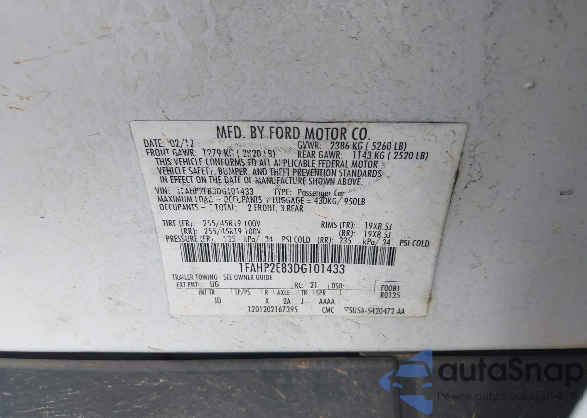 LOT: 42681603 VIN: 1FAHP2E83DG101433