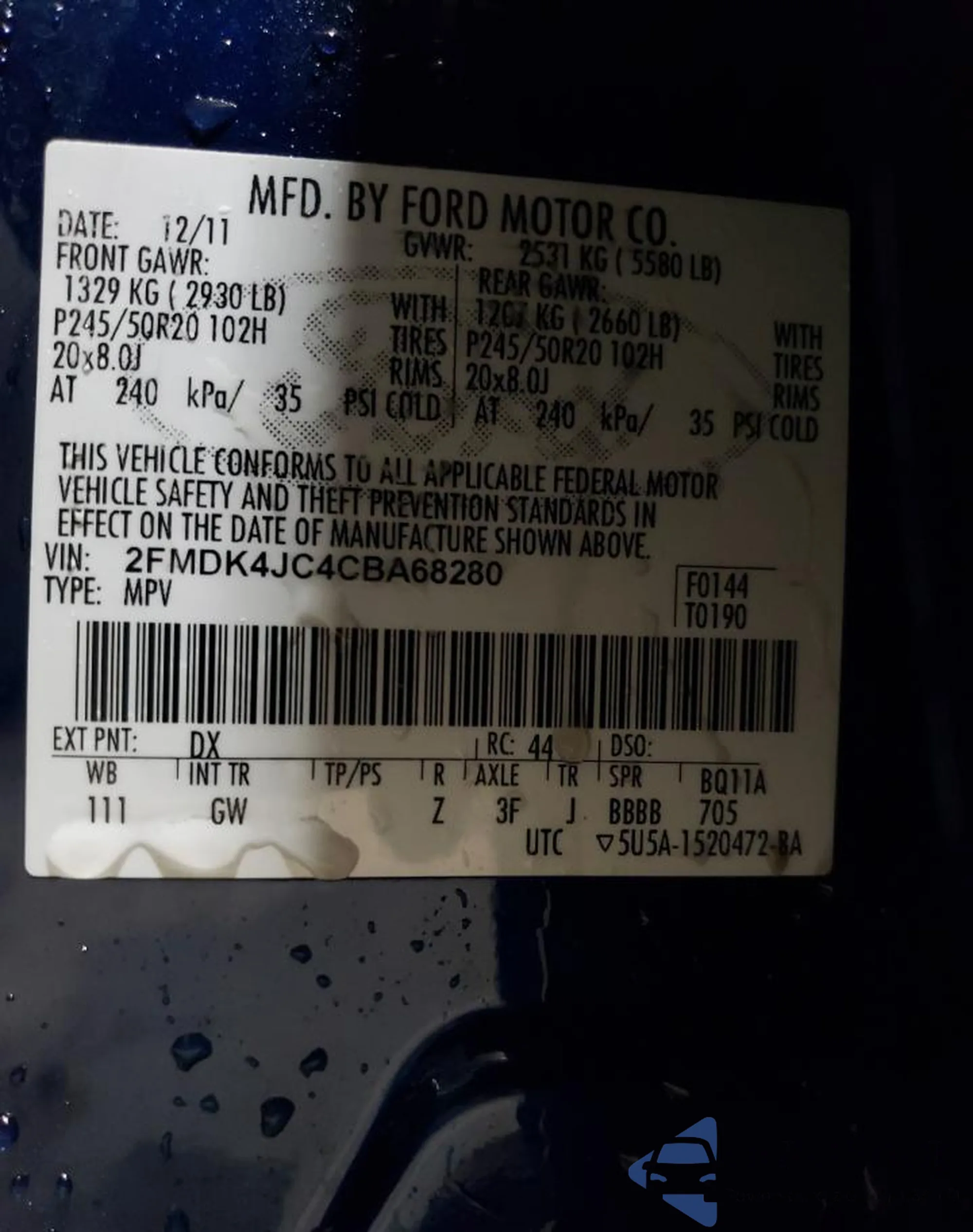 • VIN 1FMZU62X5YUB14620