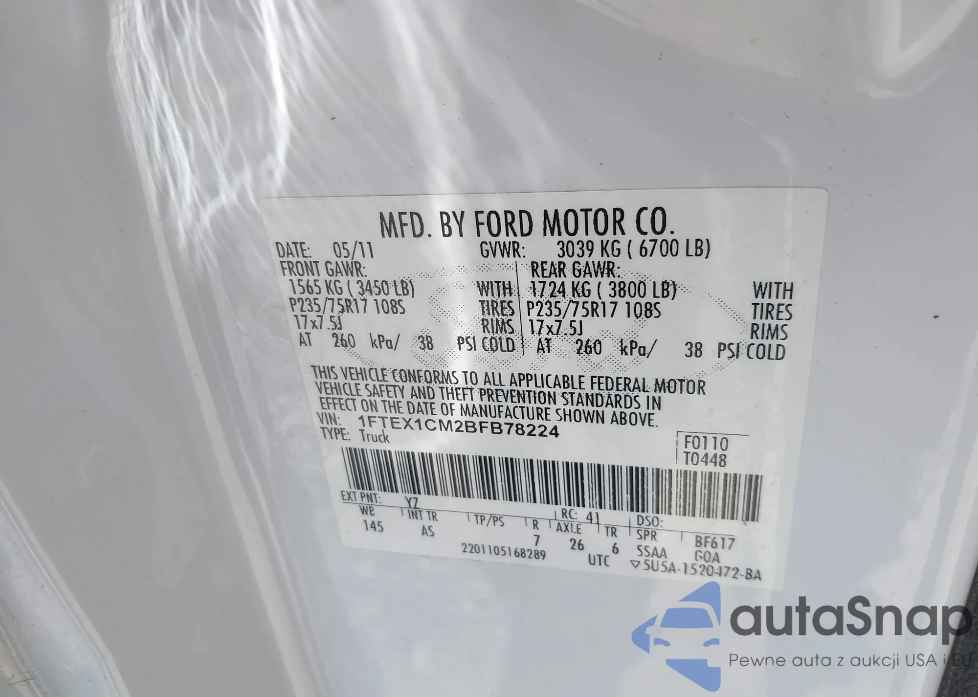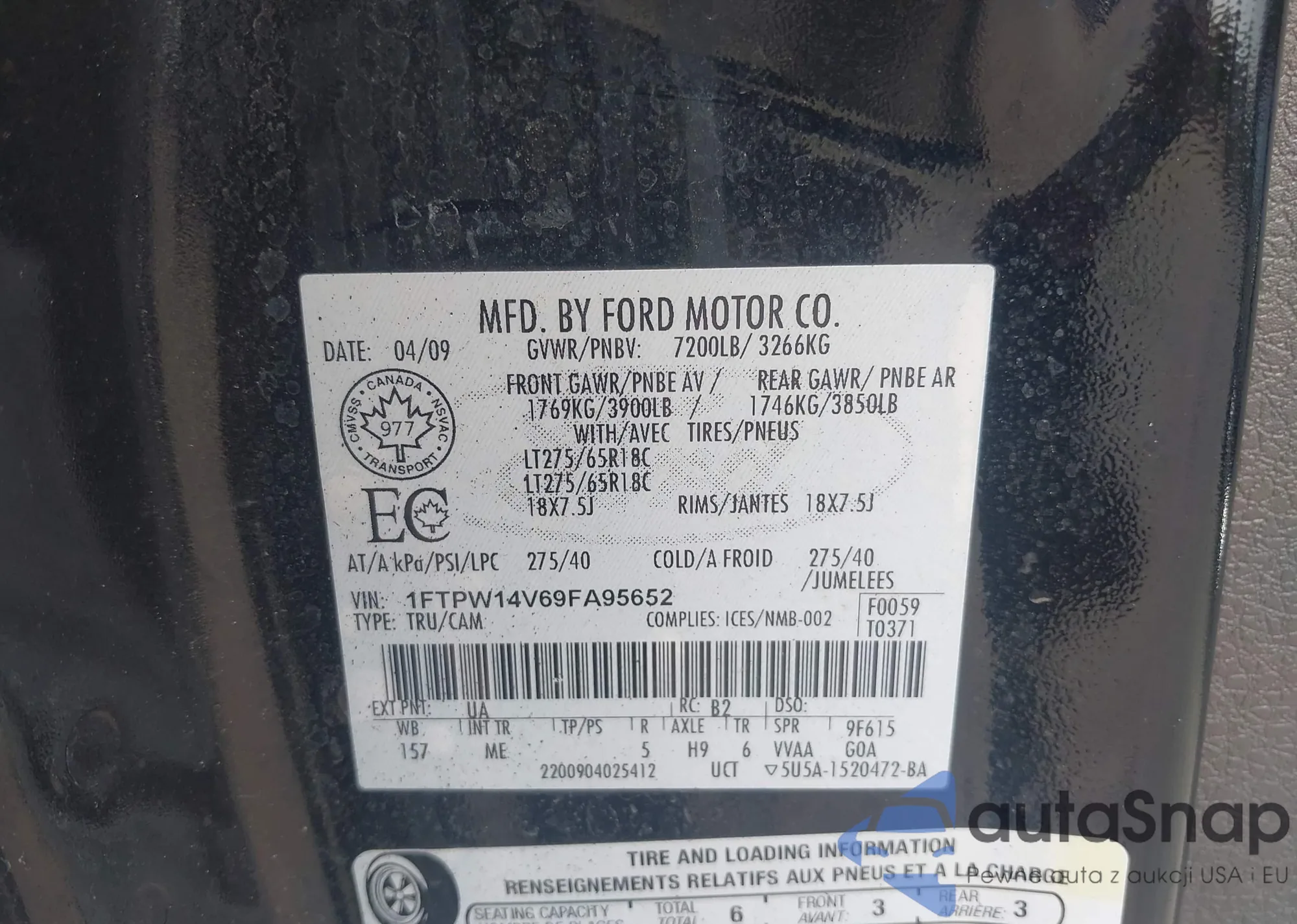 • VIN 1FTPW14V69FA95652