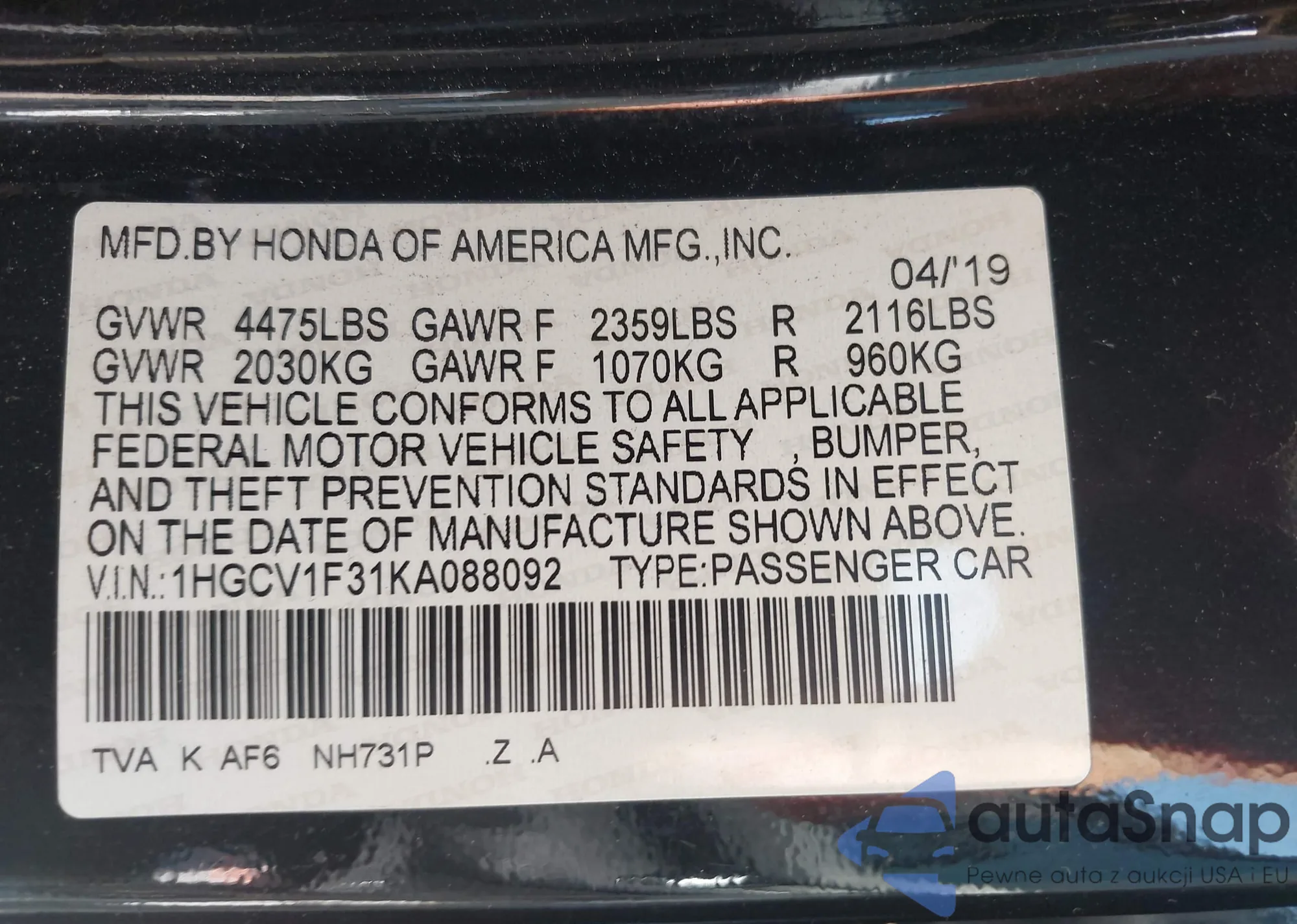 • VIN 5XXGN4A75DG205918