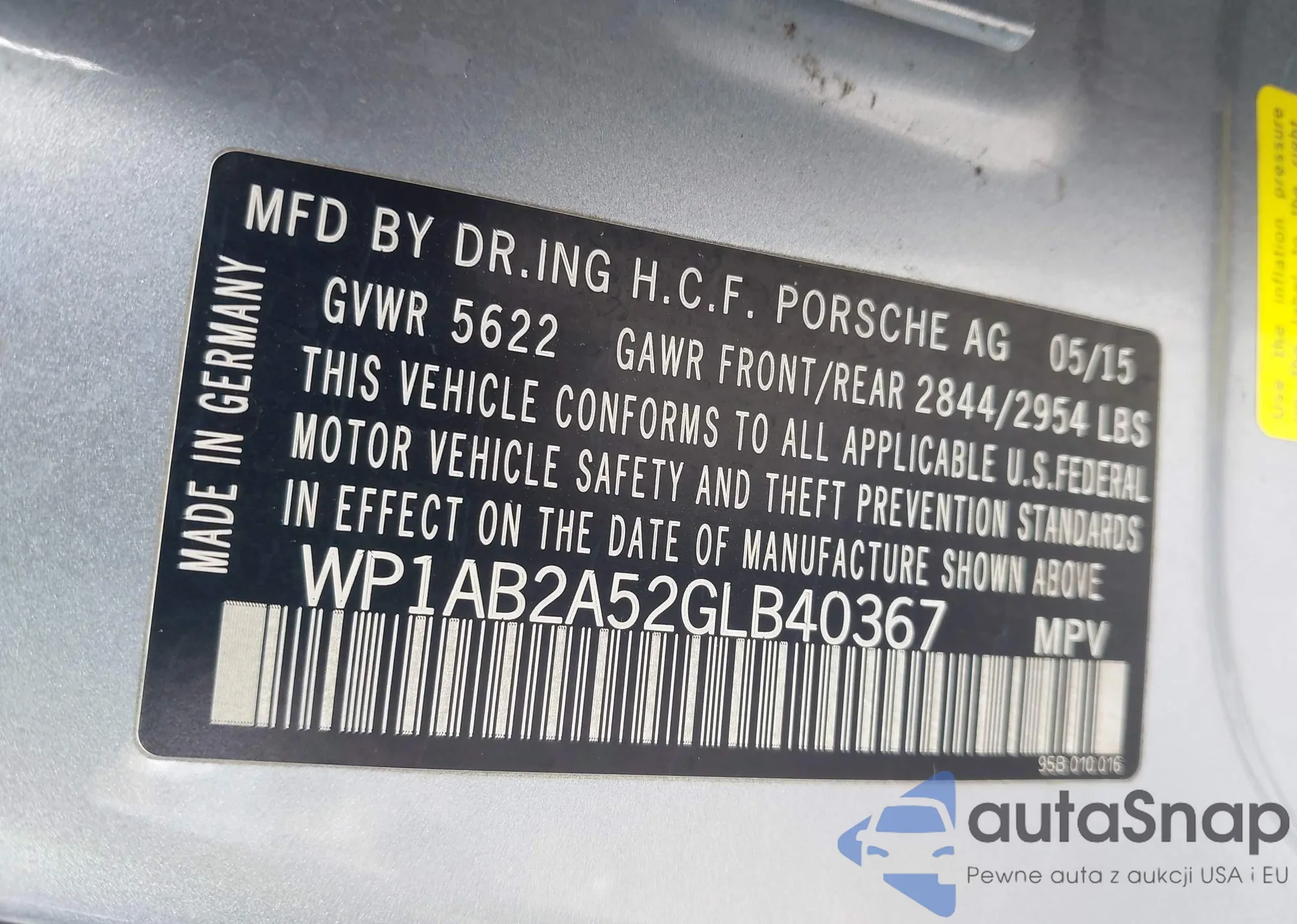 • VIN WP1AB2A52GLB40367