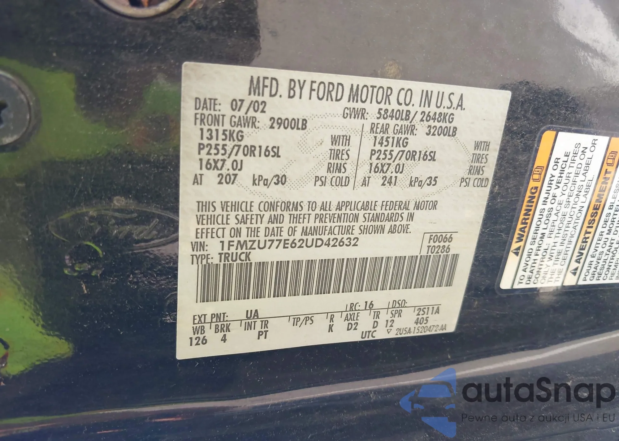 • VIN 1FMZU77E62UD42632