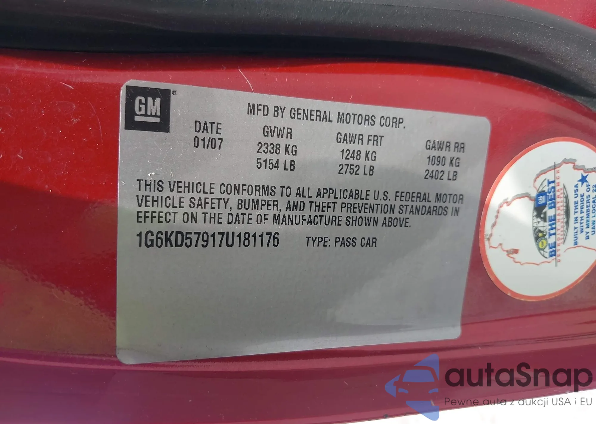 • VIN 1G6KH5EYXAU109947