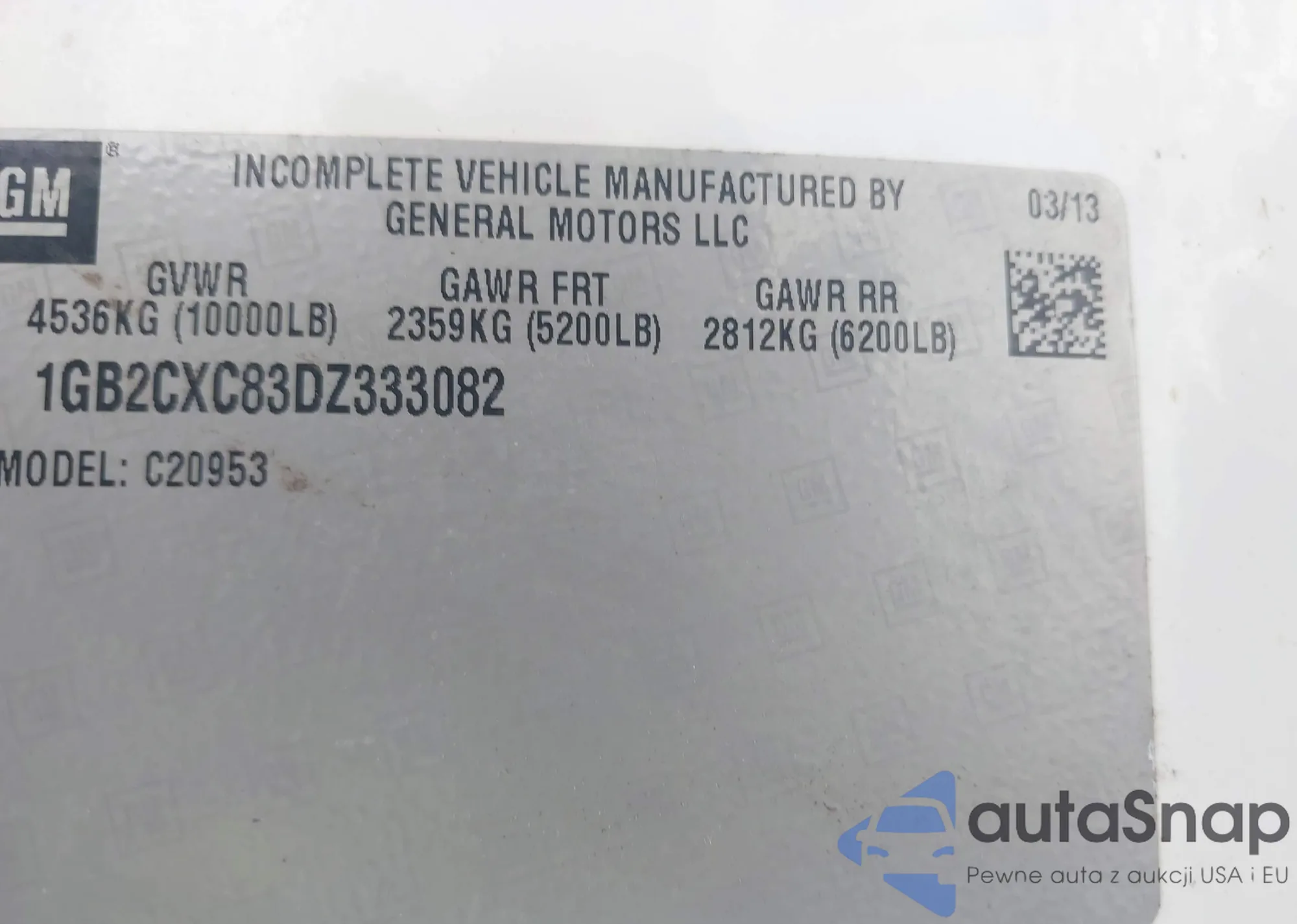 LOT: 42896247 VIN: 1GB2CXC83DZ333082