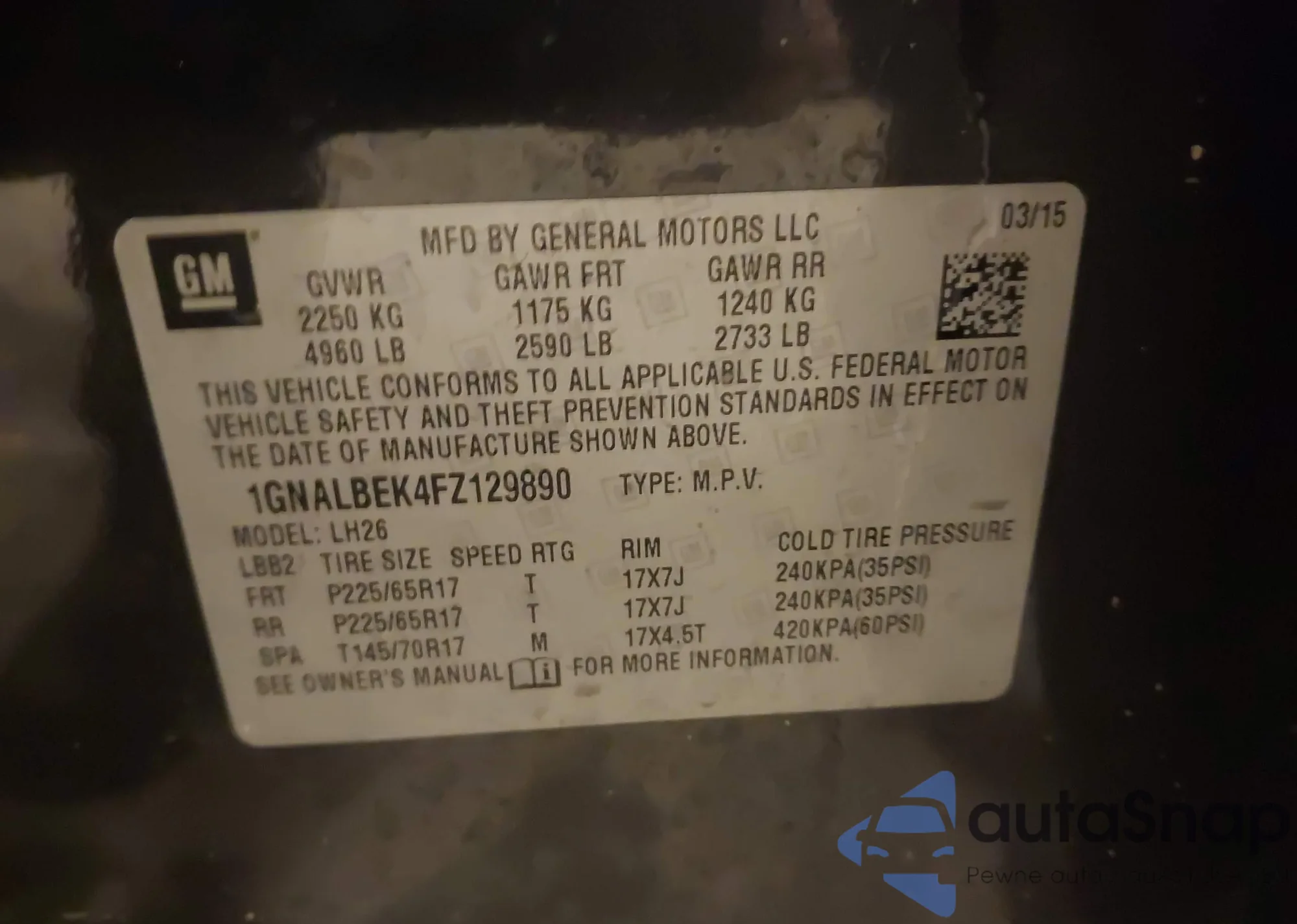 • VIN 1GNALBEK4FZ129890