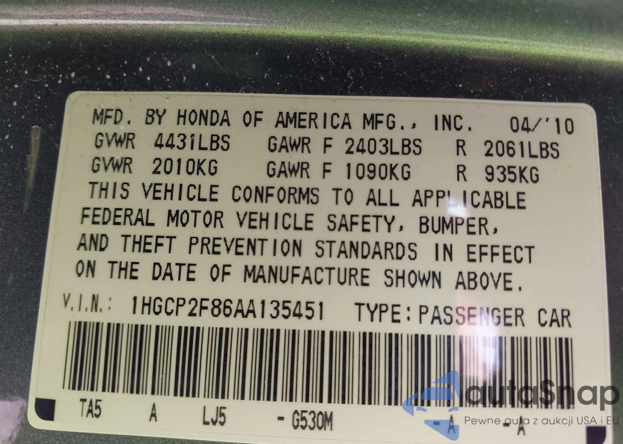 • VIN WBAPK5C54AA650908