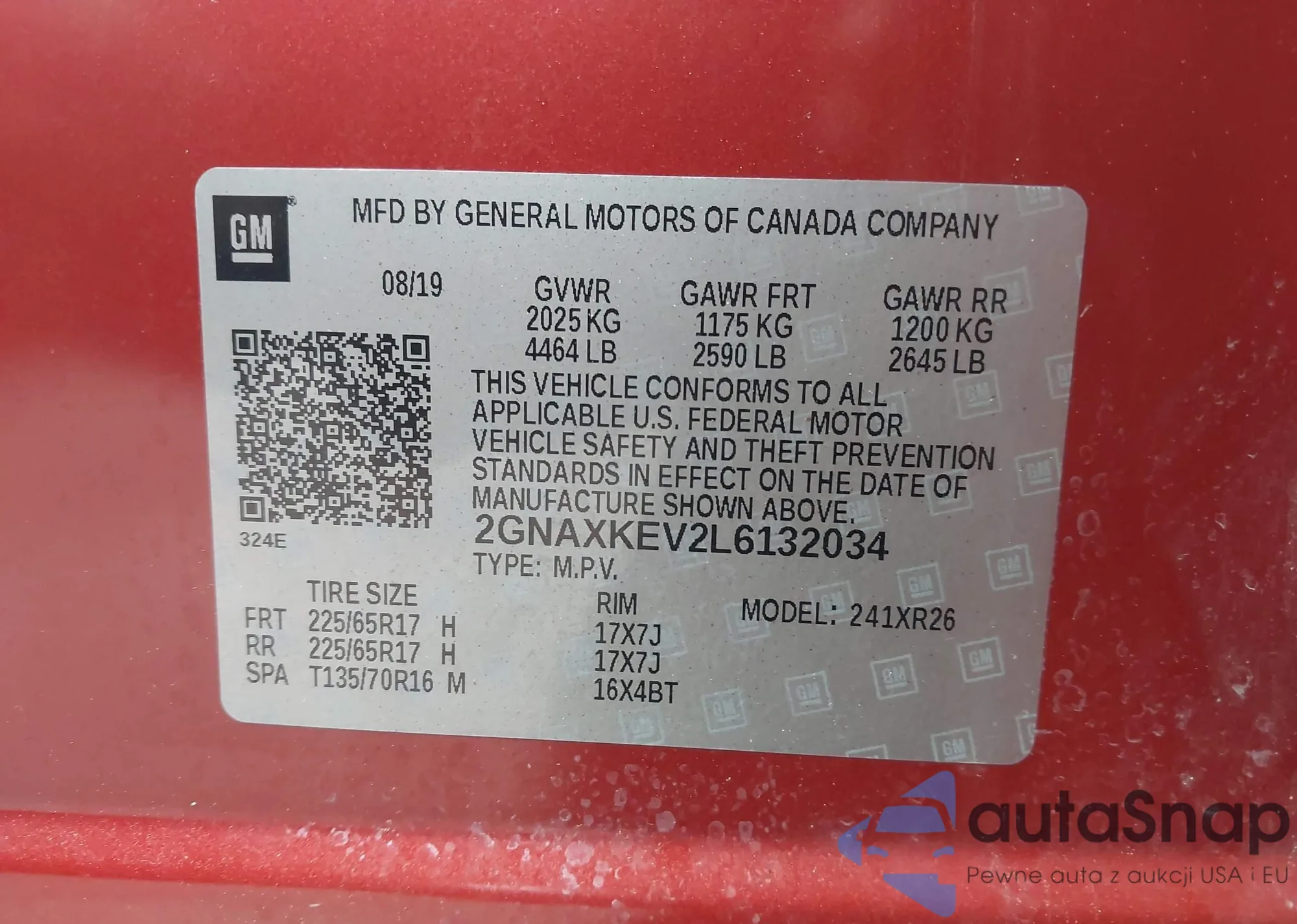LOT: 42764004 VIN: 2GNAXUEV2K6197170