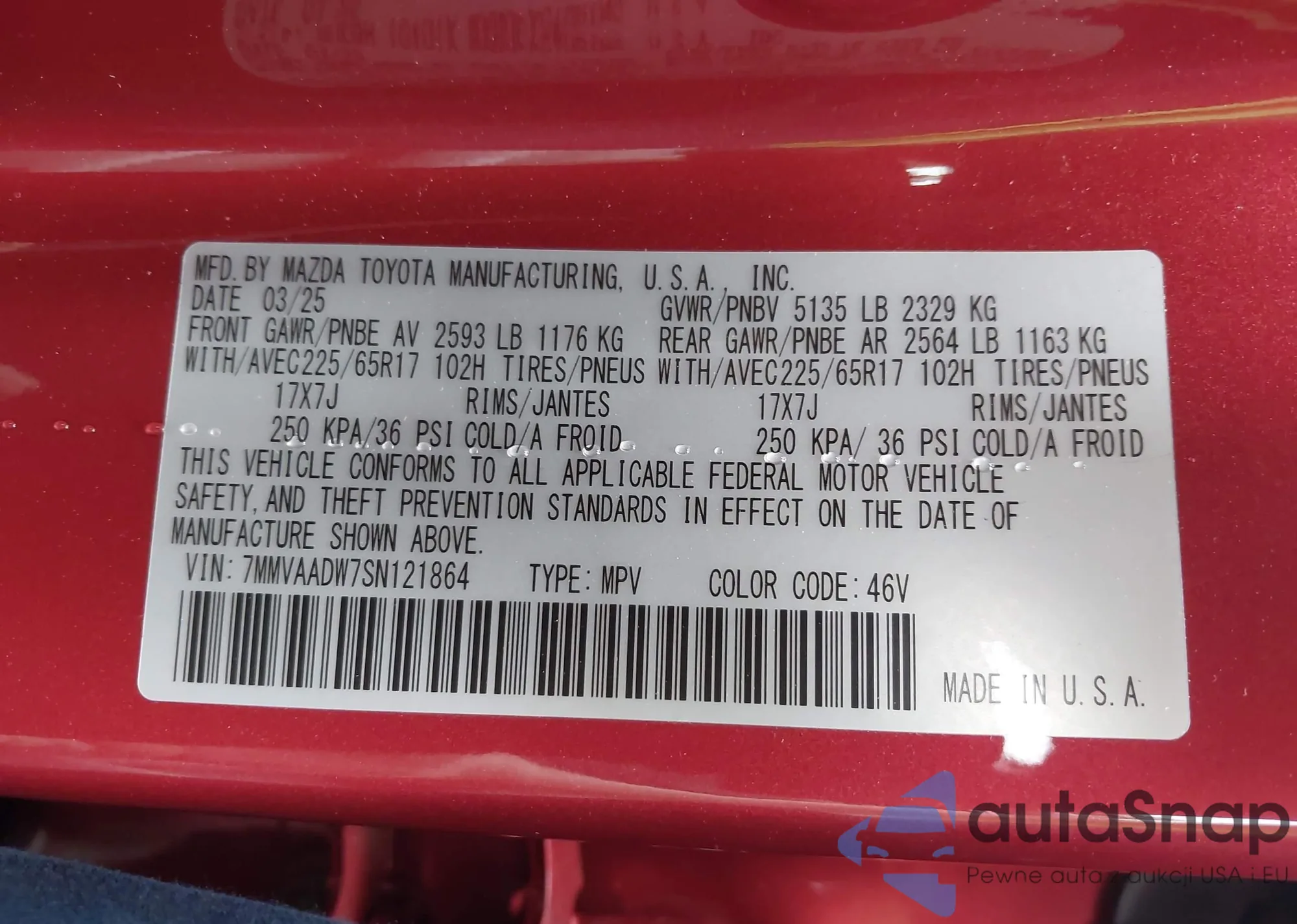 • VIN 7MMVAADW7SN121864