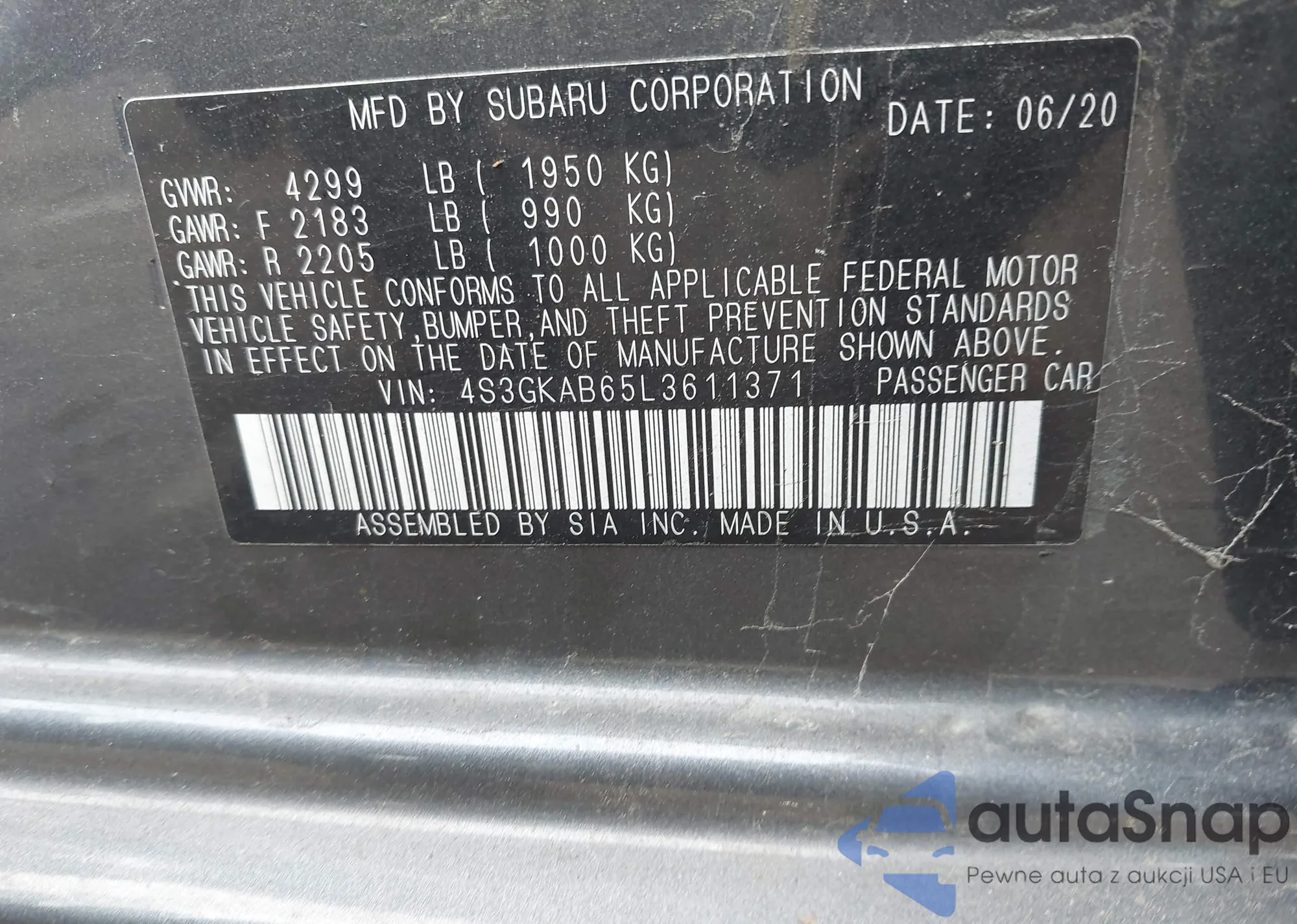 • VIN 4S3GKAB65L3611371