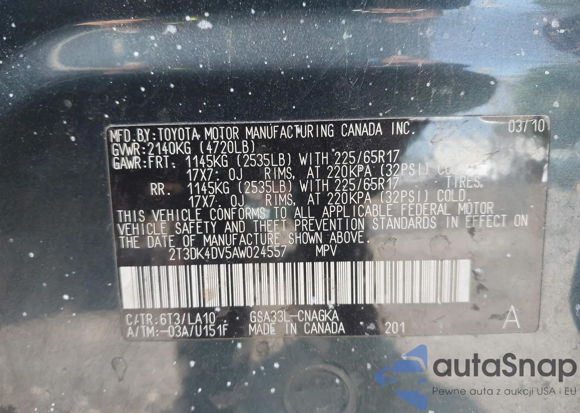 LOT: 42828818 VIN: 2T3DK4DV5AW024557