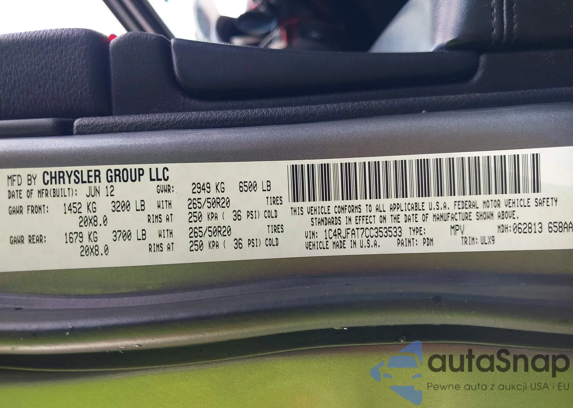 LOT: 42967812 VIN: 2C3CDXCTXMH656230