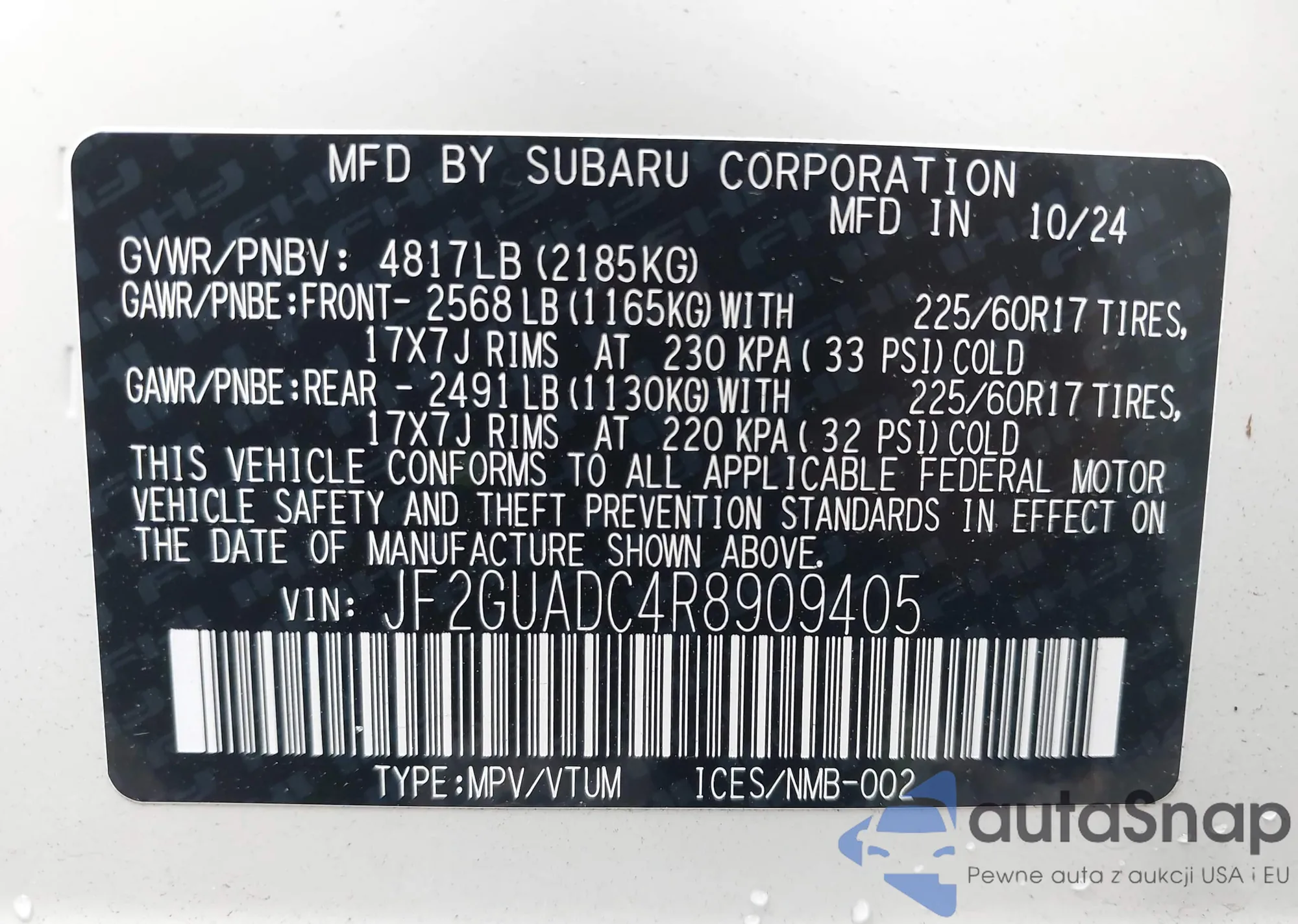 • VIN JF2GUADC4R8909405