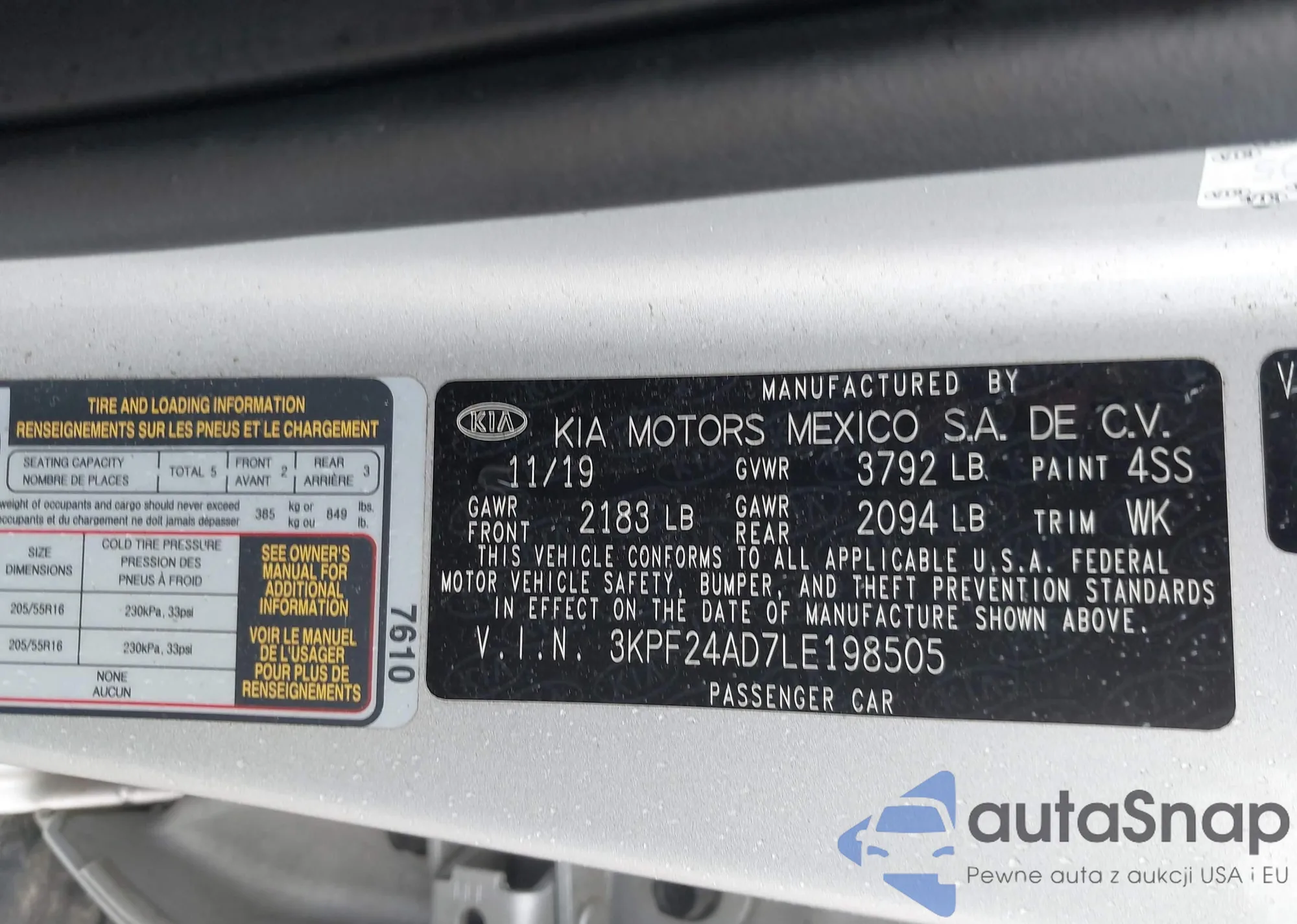 • VIN 3KPF24AD7LE198505