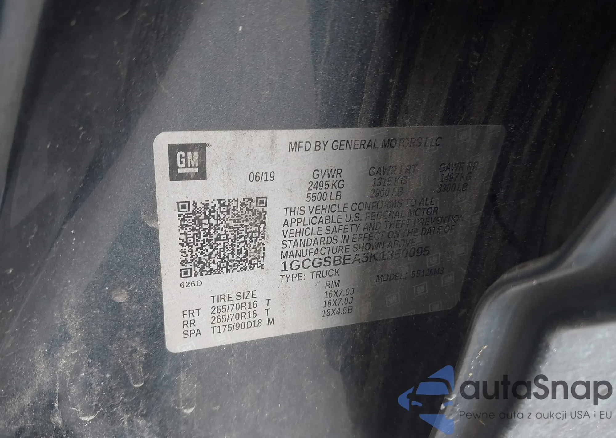 • VIN 1GCGSBEA5K1350095