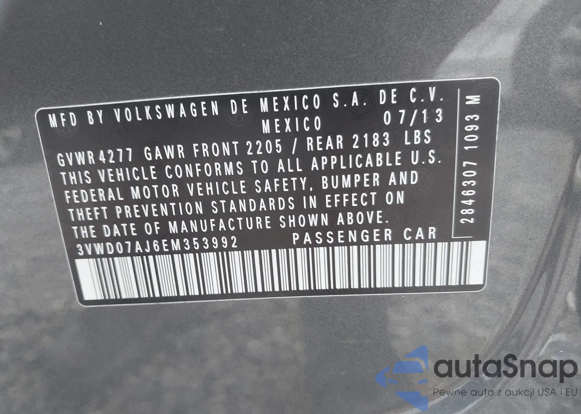 • VIN 3VWD07AJ6EM353992