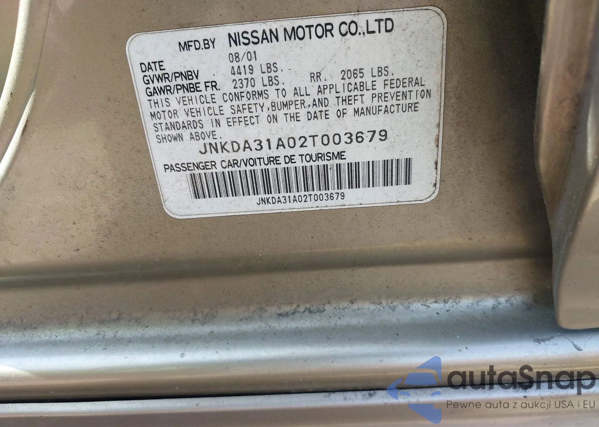 • VIN JNKDA31A02T003679