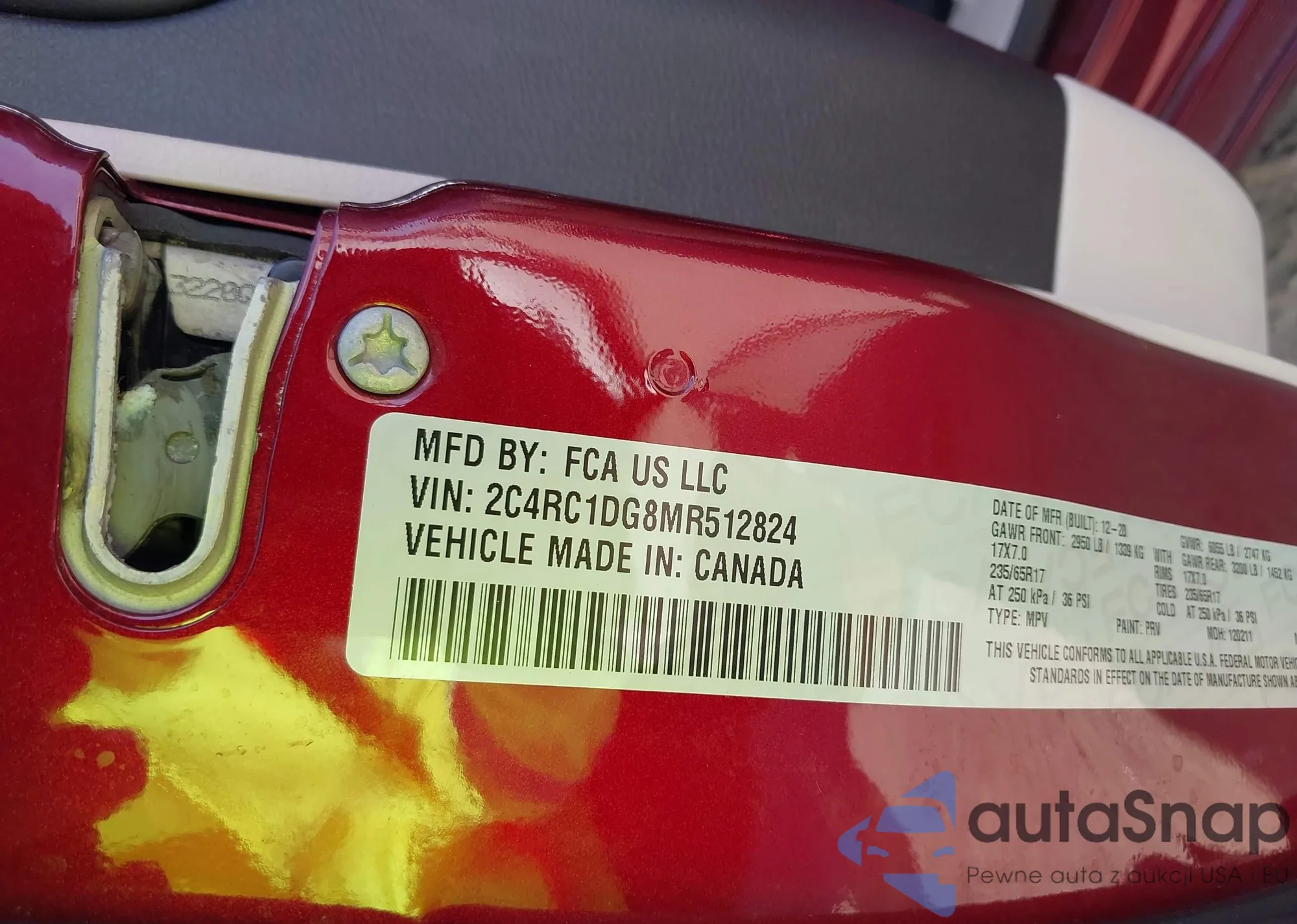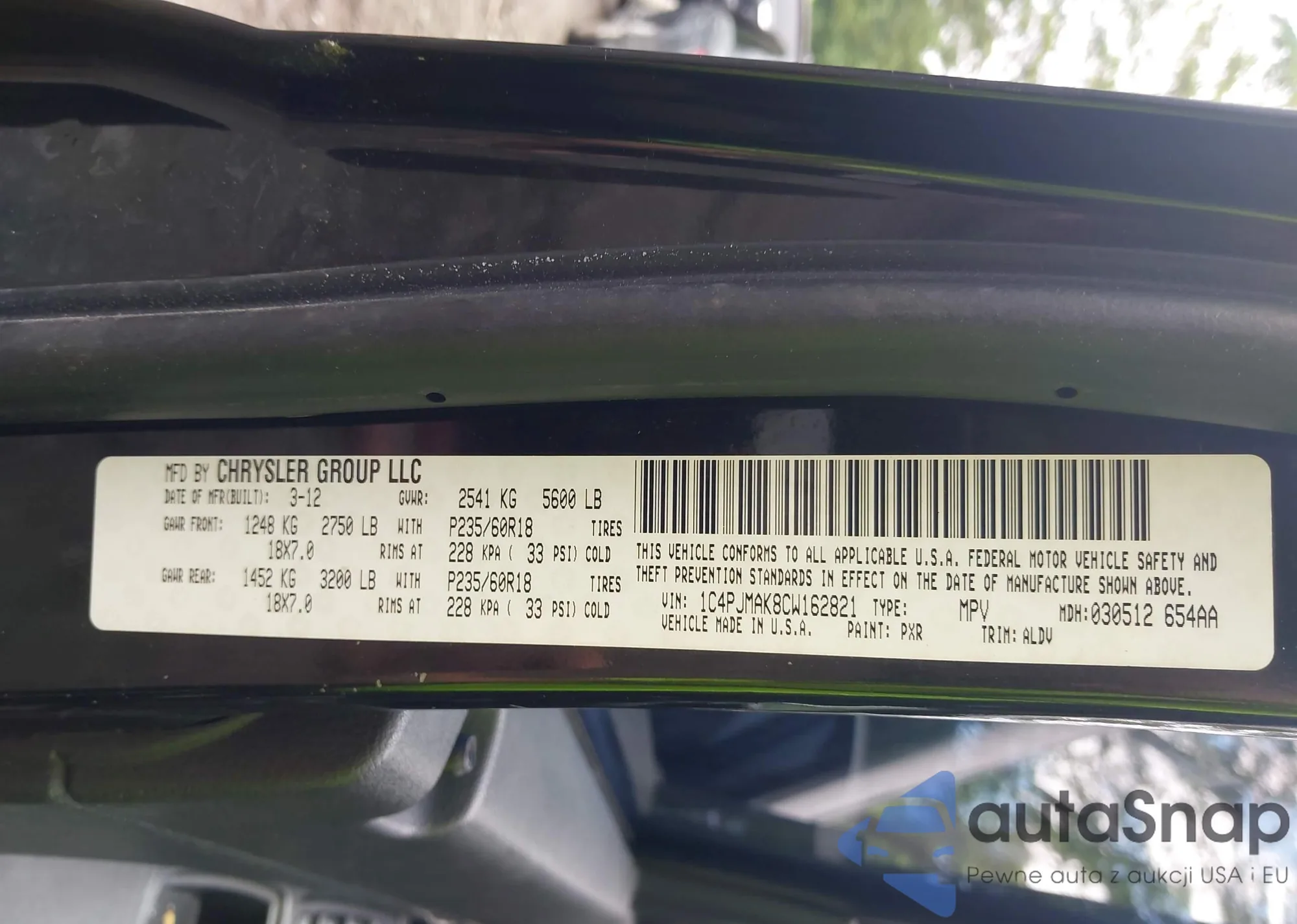 • VIN 1C4PJMAK8CW162821