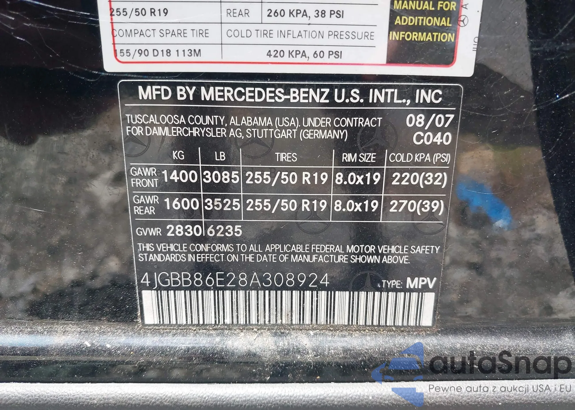 • VIN 4JGBB86E28A308924
