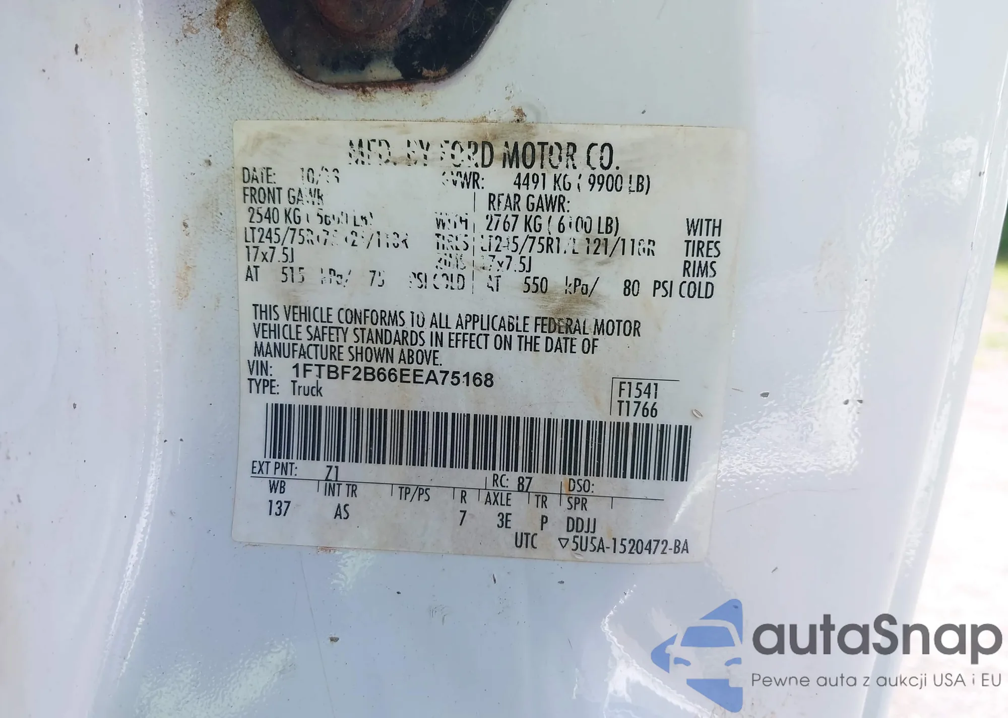LOT: 42786067 VIN: 1FTBF2B66EEA75168