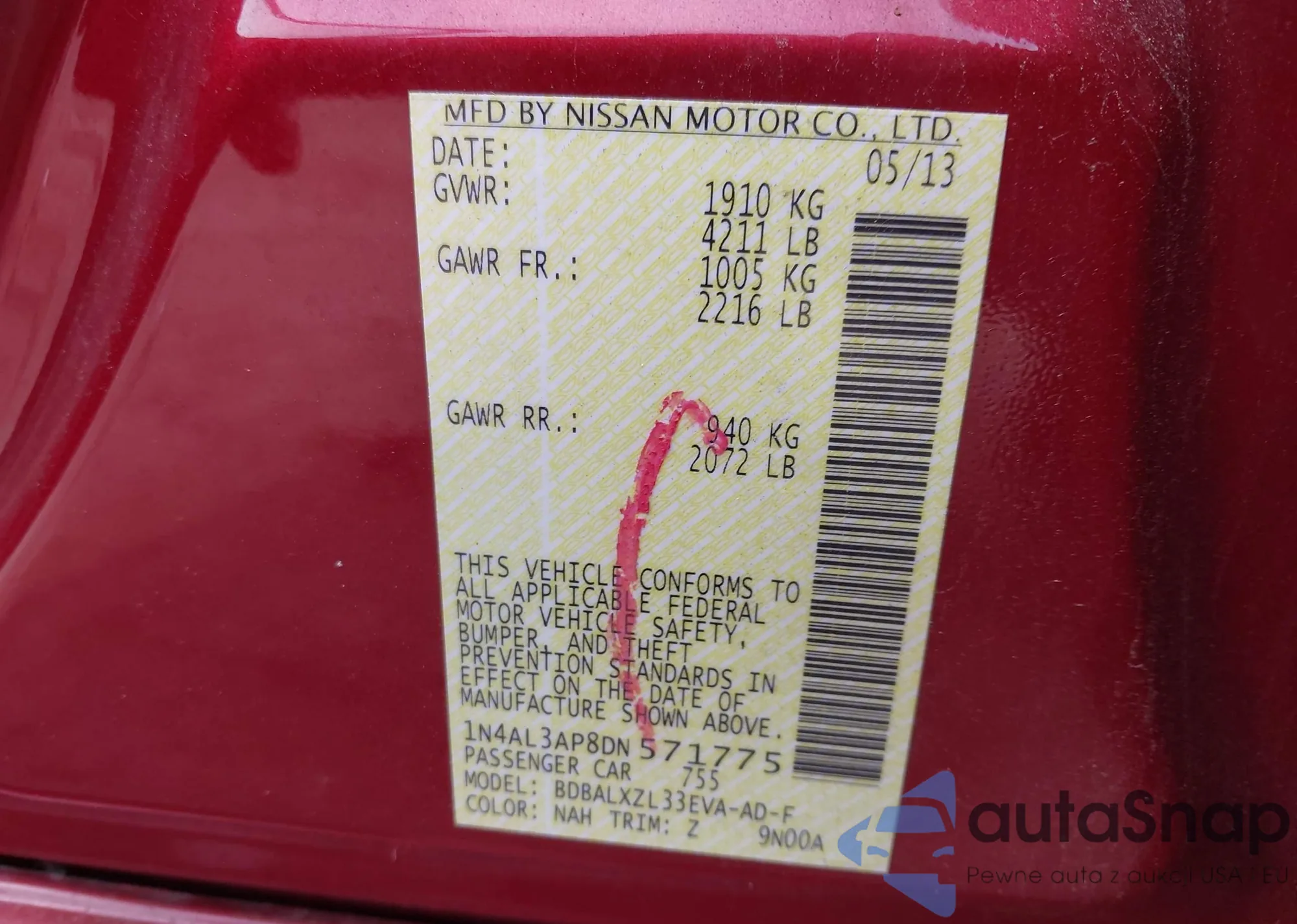 LOT: 42917155 VIN: 1N4AL3AP8DN571775