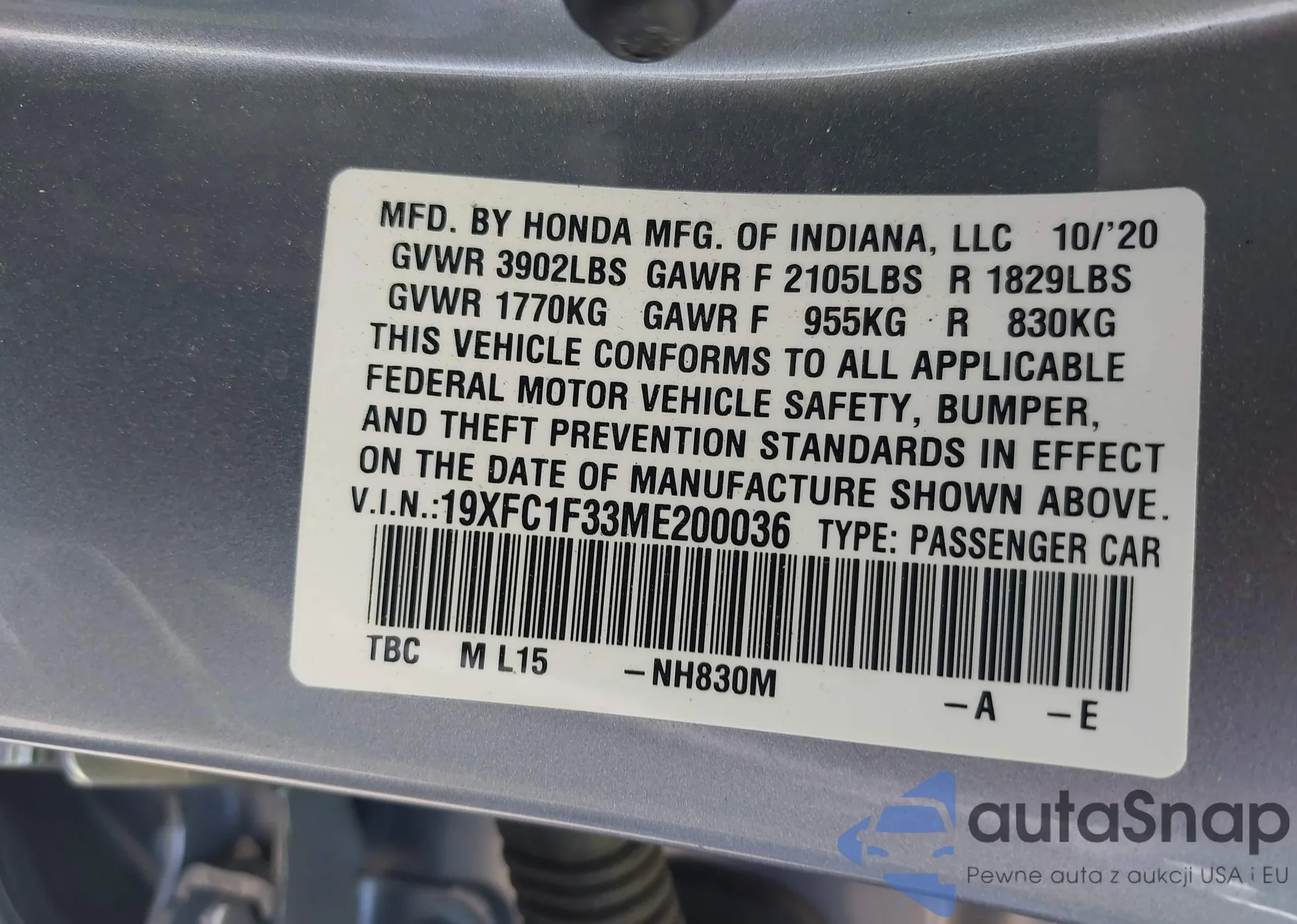 LOT: 42696144 VIN: 1HGCR2F70HA233855