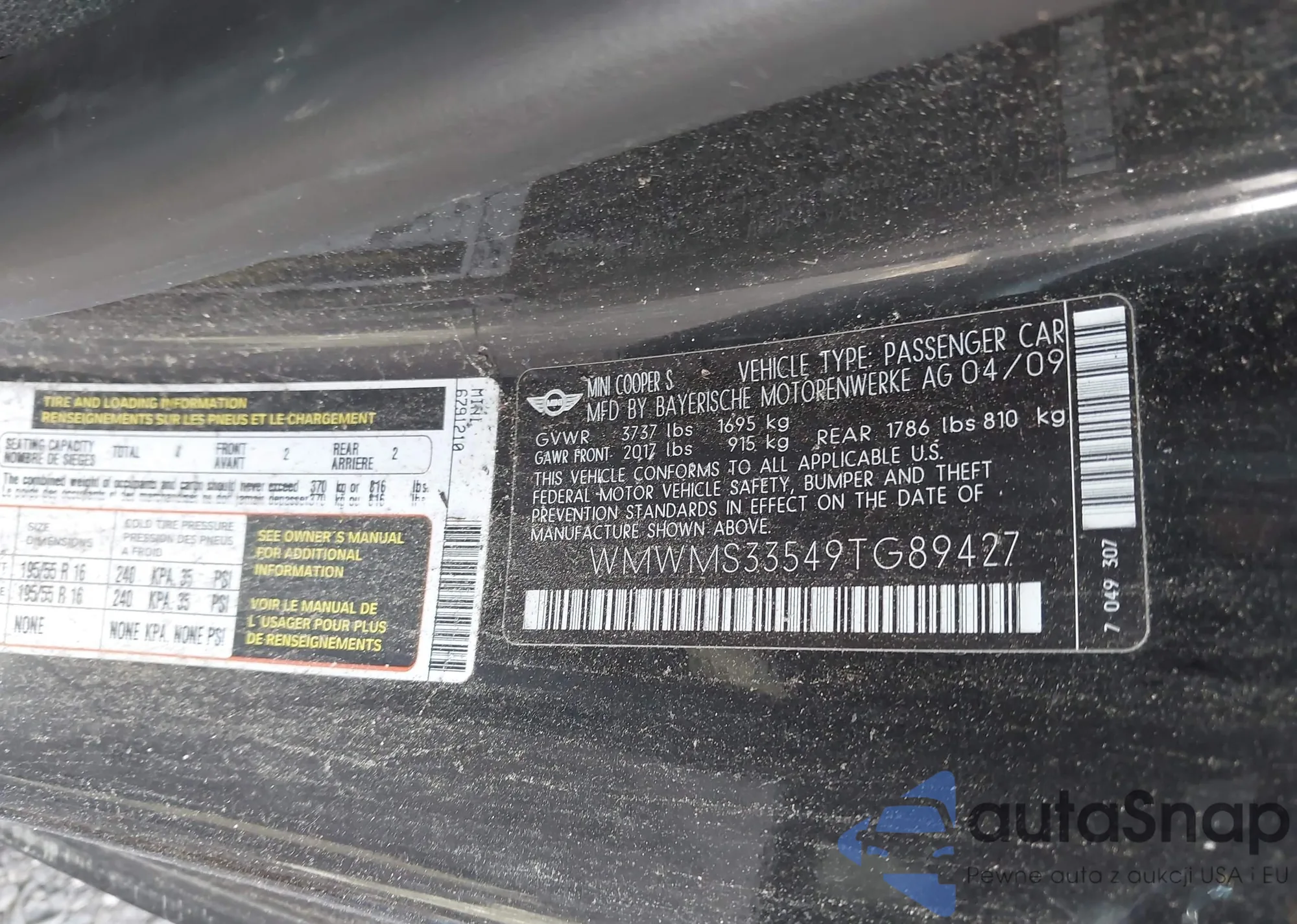 • VIN WMWMS33549TG89427