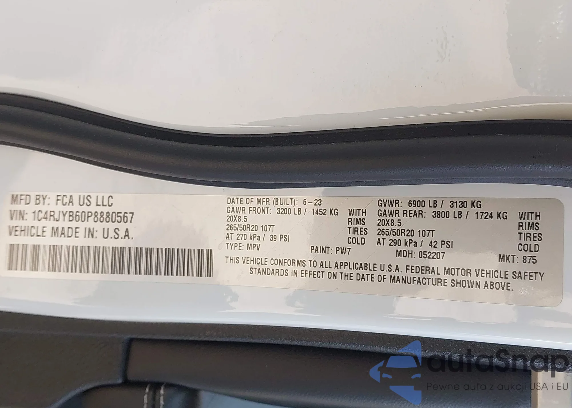 • VIN 1C4RJYB60P8880567