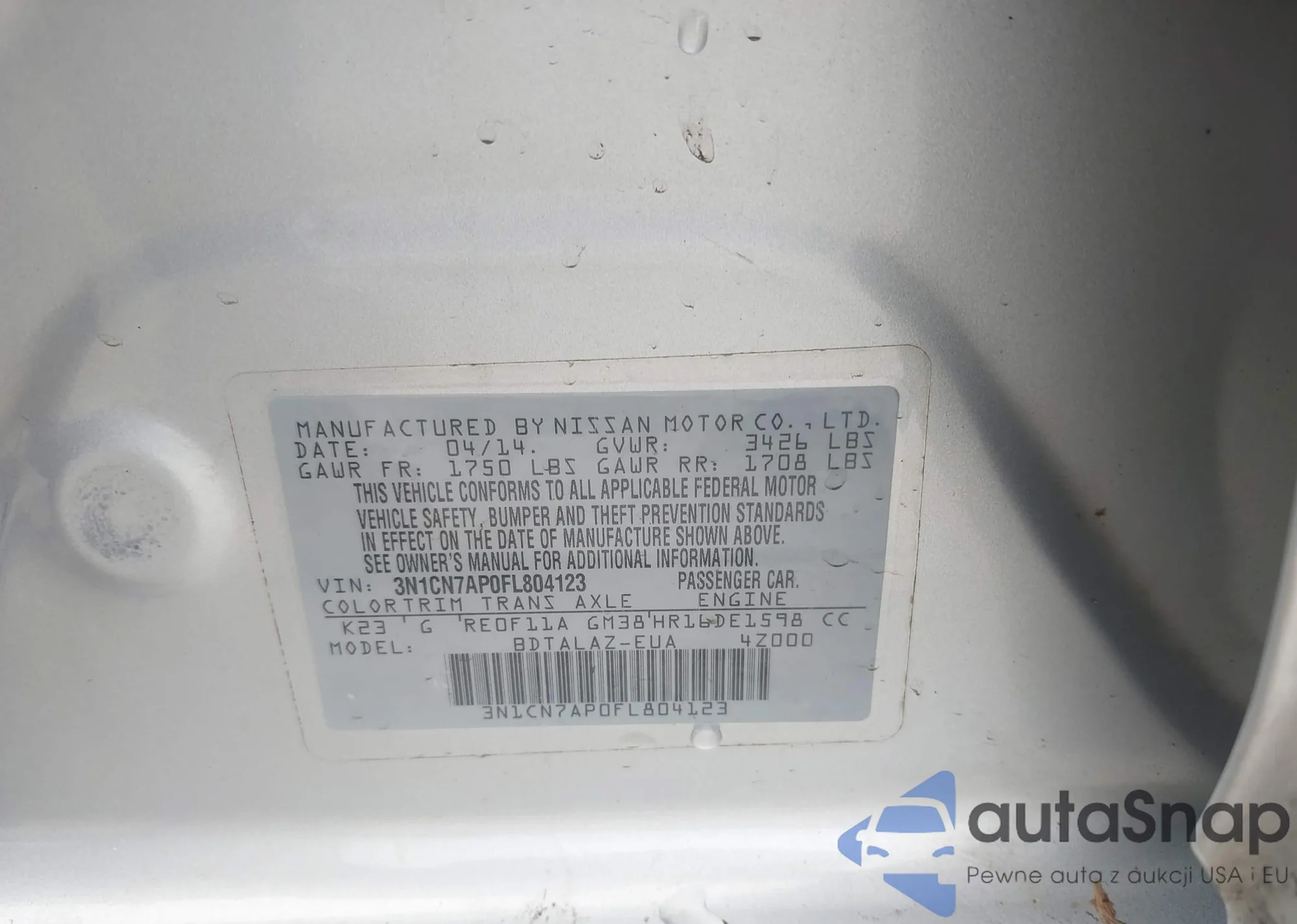 • VIN 3N1CN7AP0FL804123