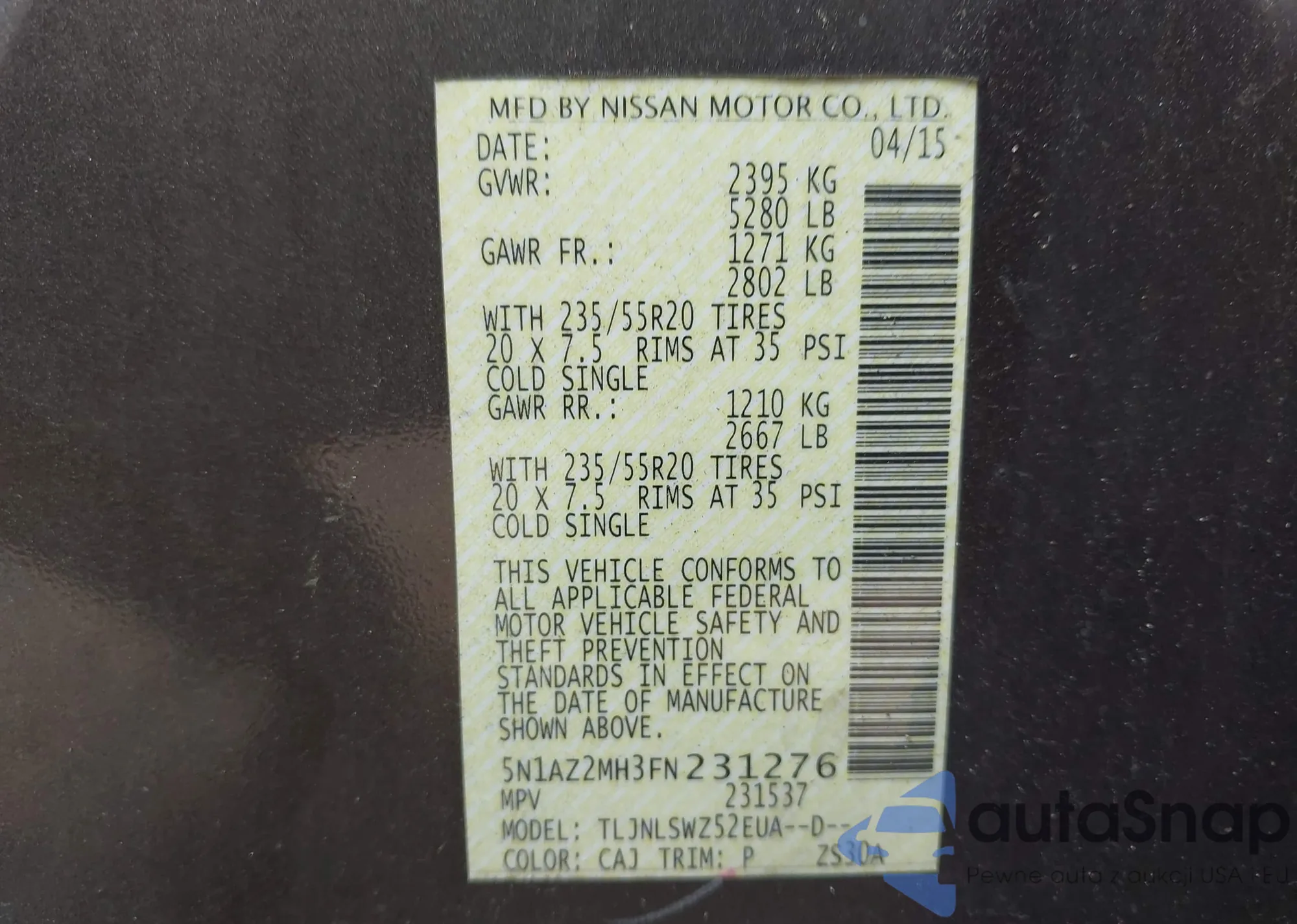 LOT: 43060107 VIN: 1N4AL3AP4EN235641