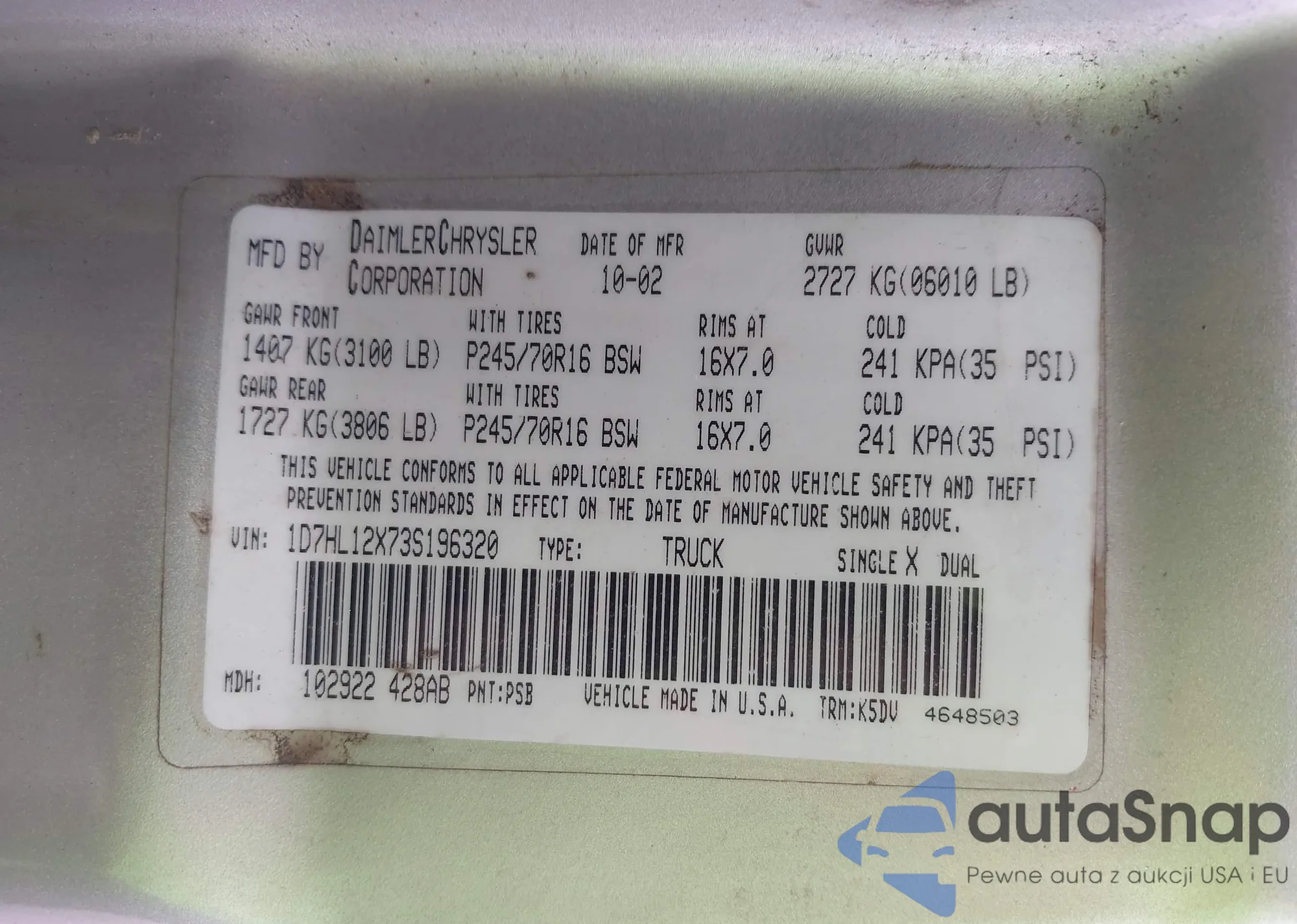 LOT: 42859667 VIN: 1C3CDFCB0ED723627