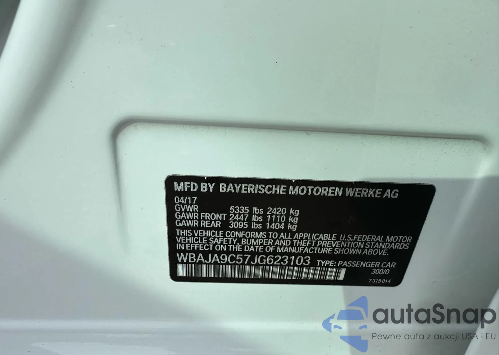 • VIN WBAJA9C57JG623103