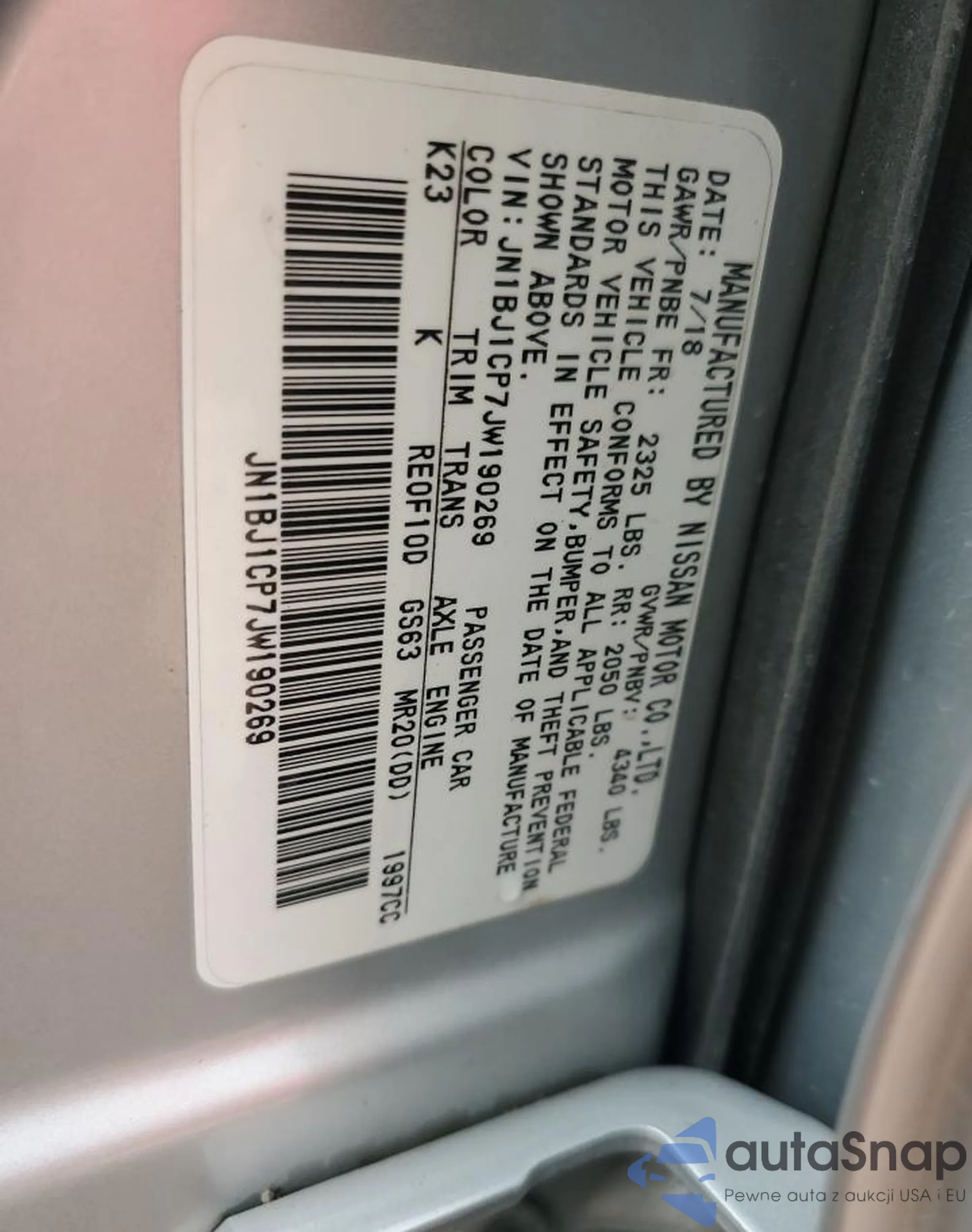 LOT: 62723475 VIN: JN1BJ1CP7JW190269