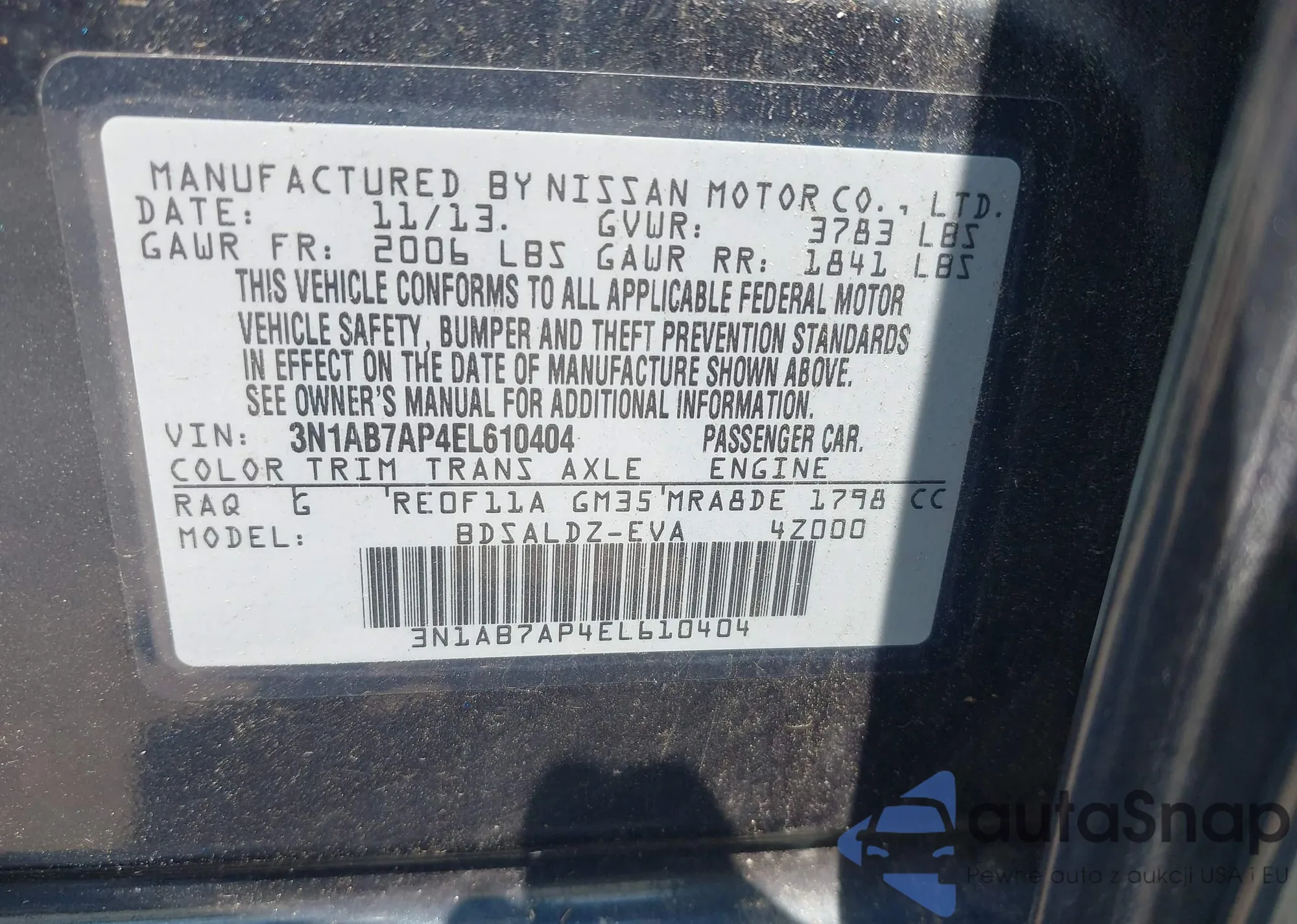 LOT: 43015299 VIN: 5N1CL0MM2EC511535