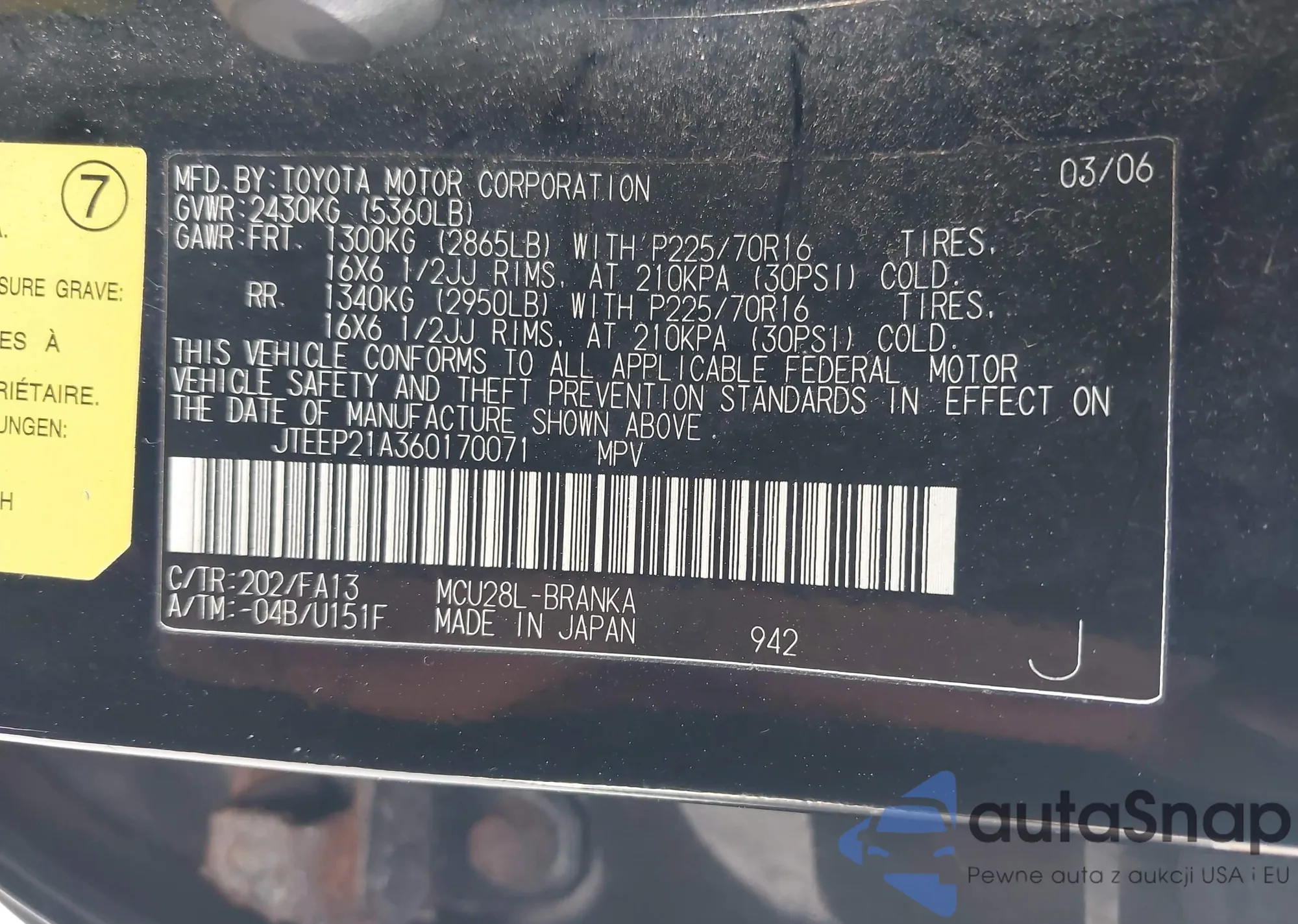 LOT: 42916859 VIN: KM8SG73D47U143866