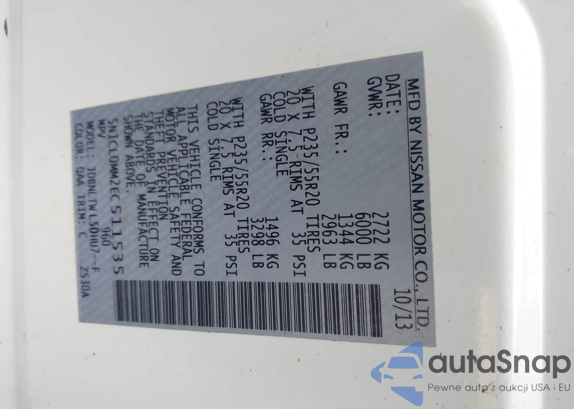 • VIN 5N1CL0MM2EC511535