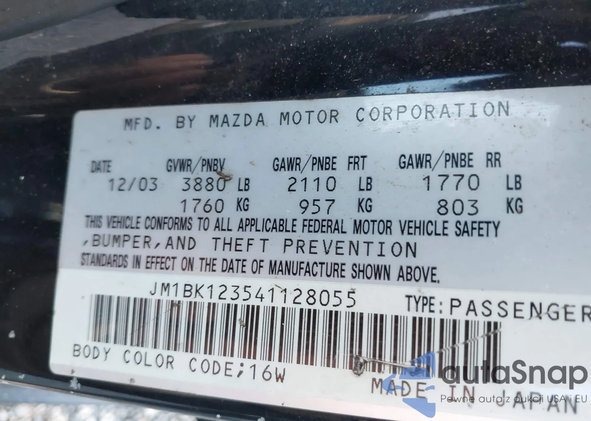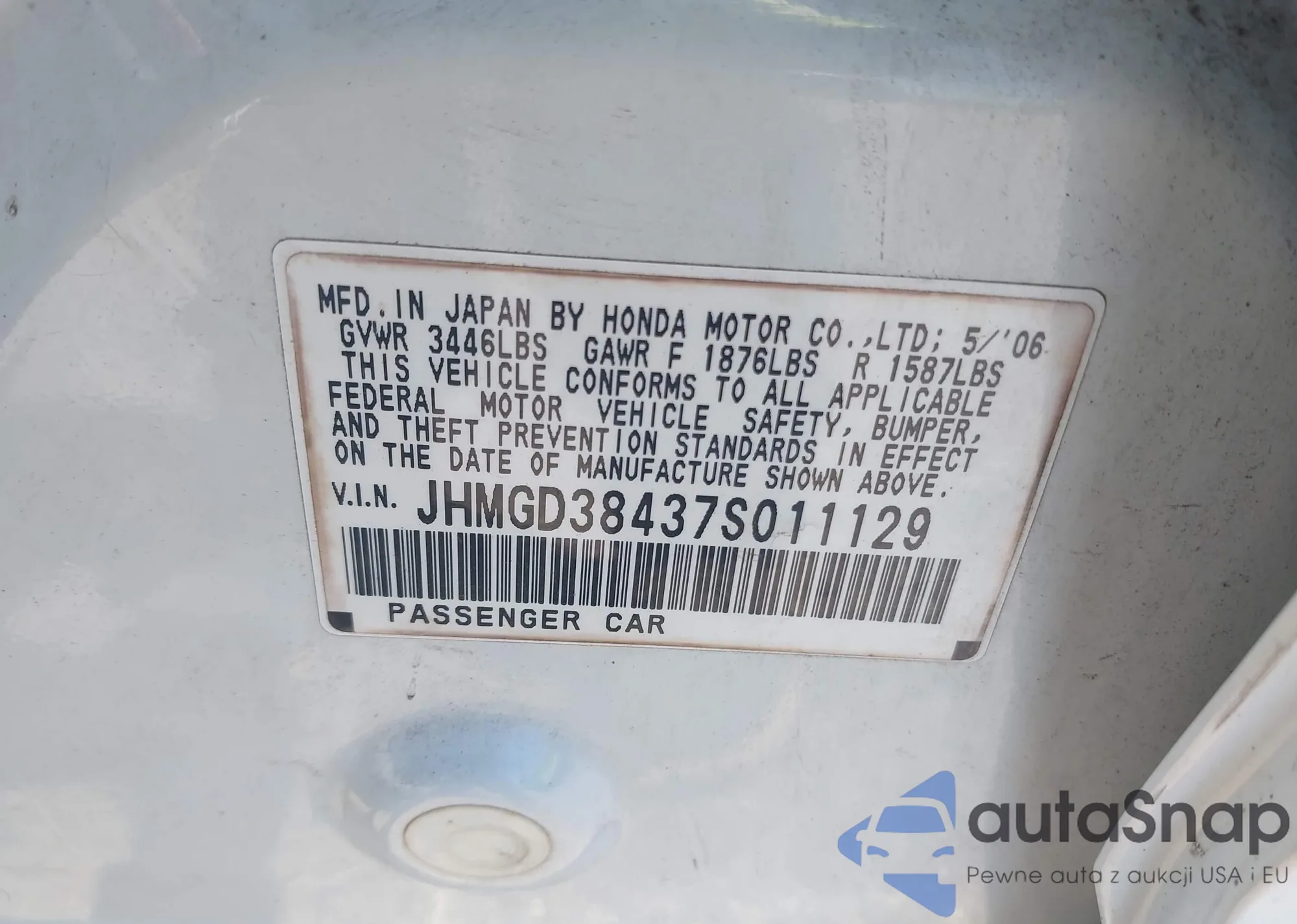 LOT: 42581199 VIN: JHMGD38437S011129