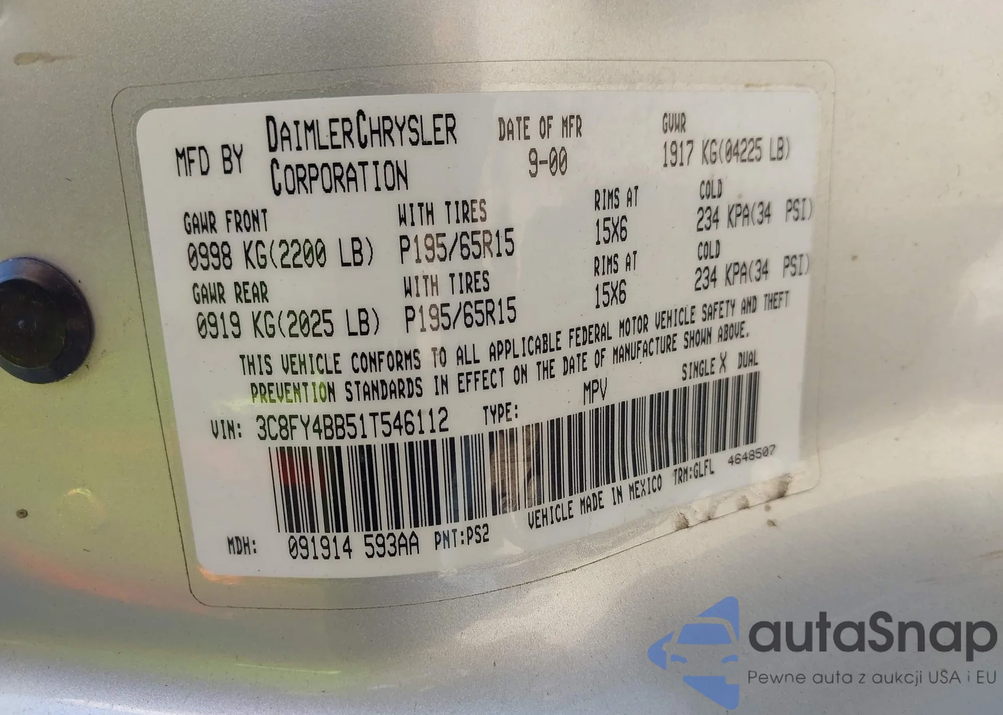 • VIN 3C8FY4BB51T546112
