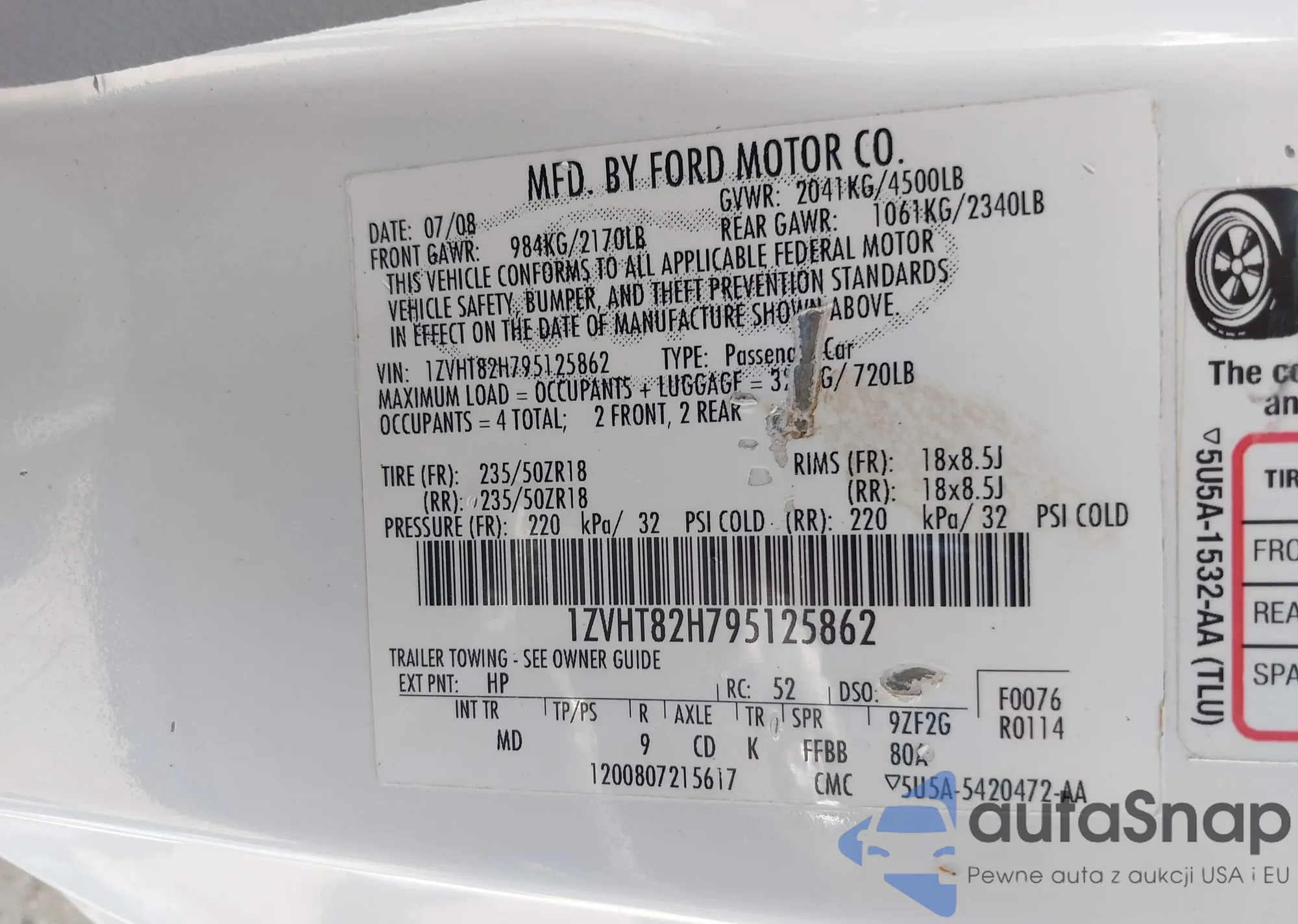 LOT: 42924170 VIN: 1ZVHT82H795125862