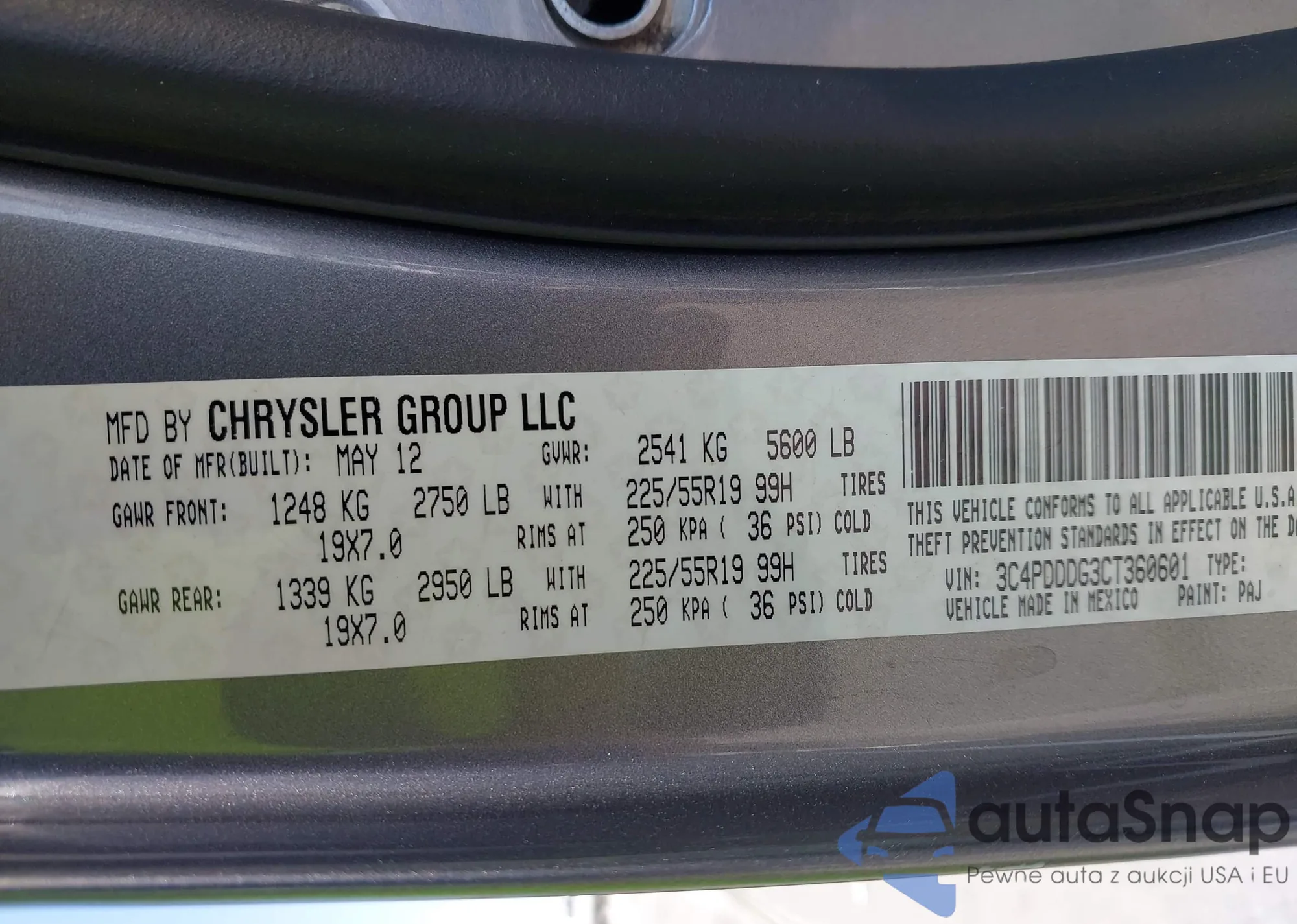 • VIN 3C4PDDDG3CT360601