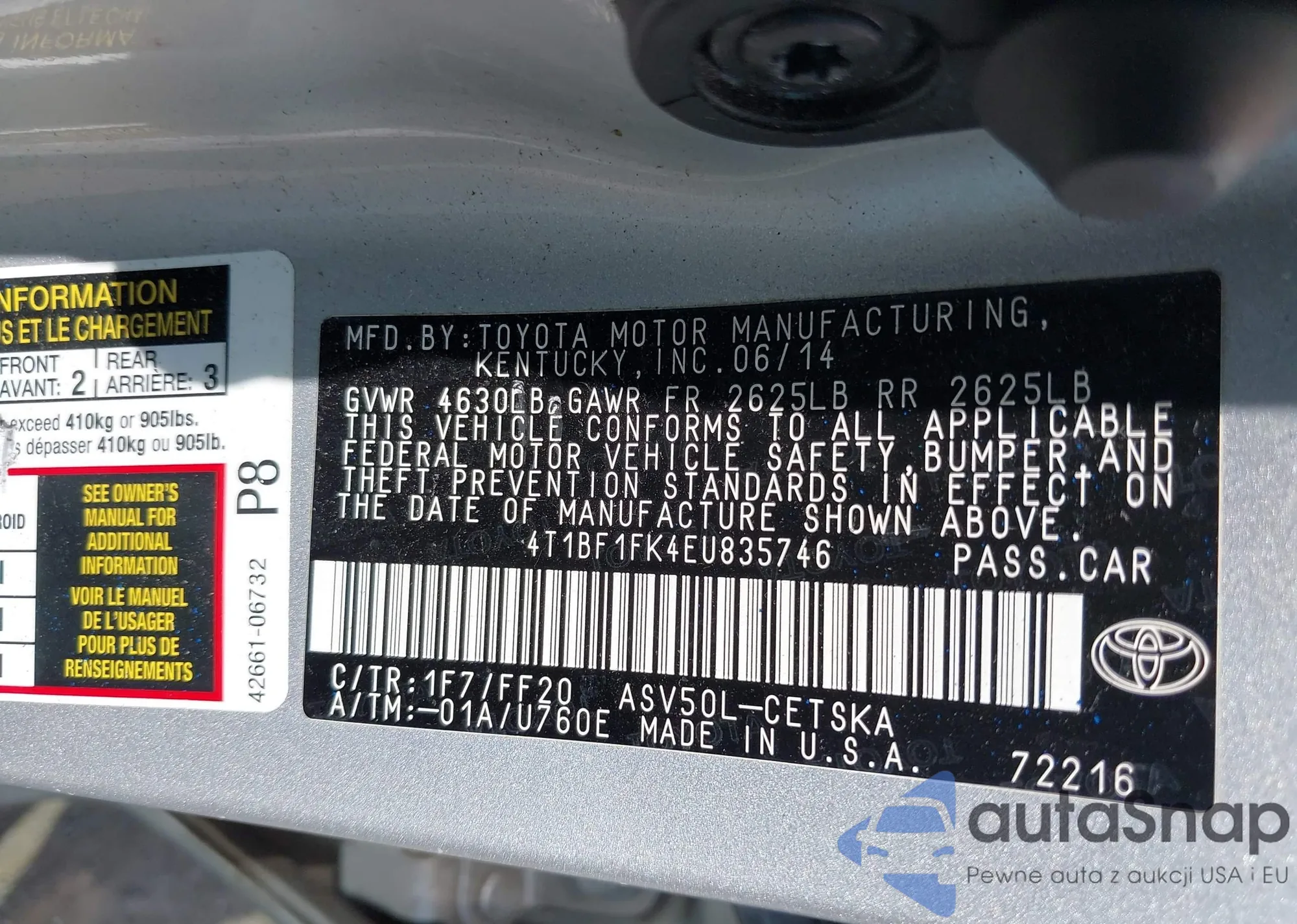 • VIN 4T1BF1FK4EU835746